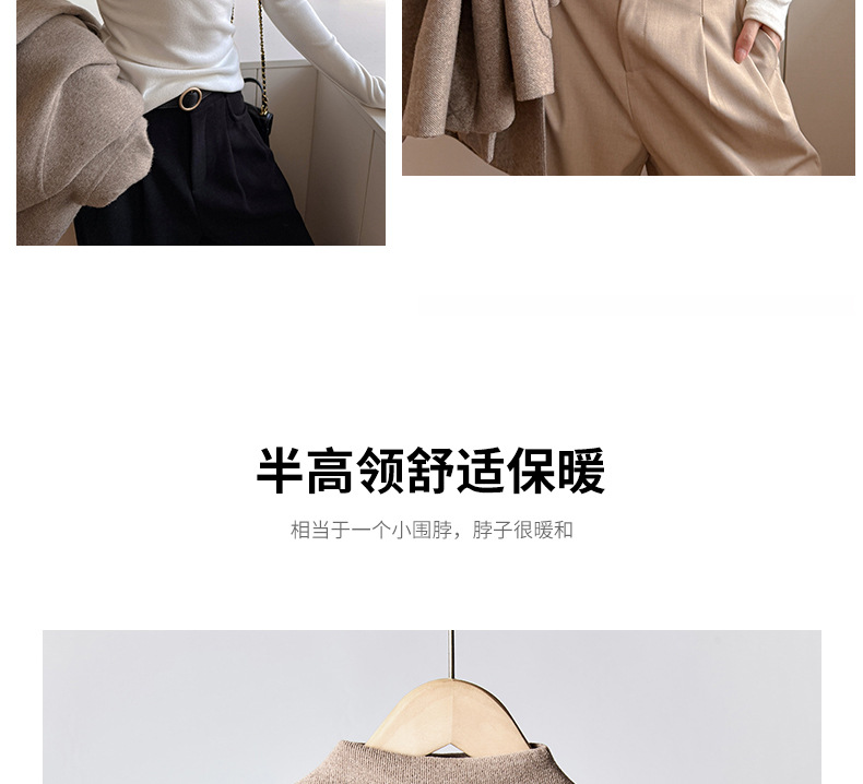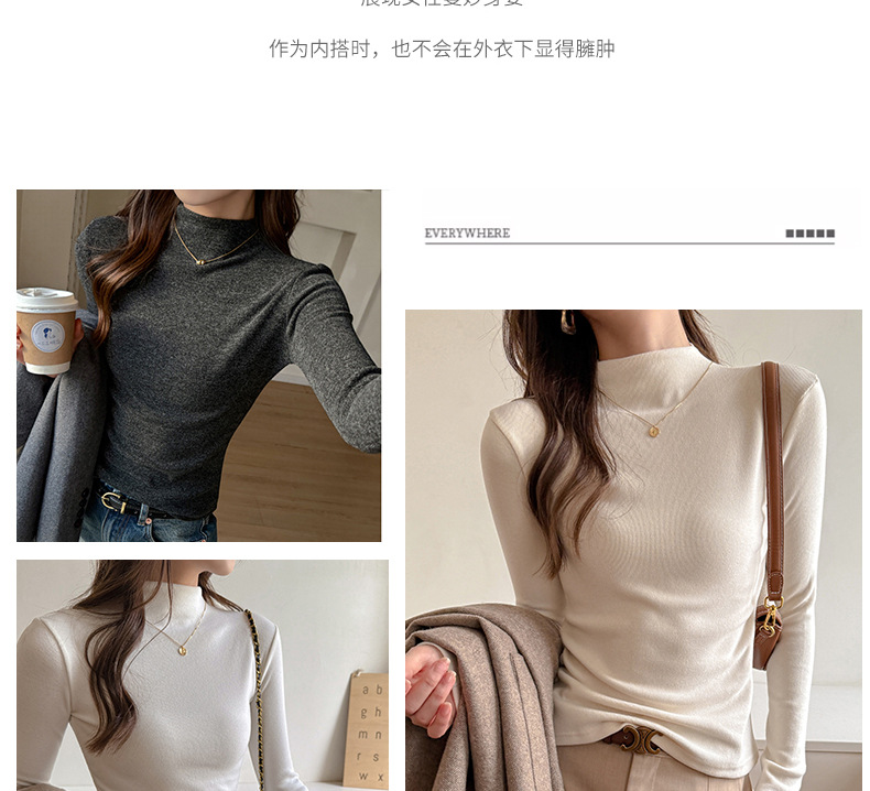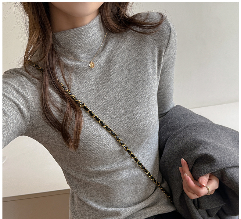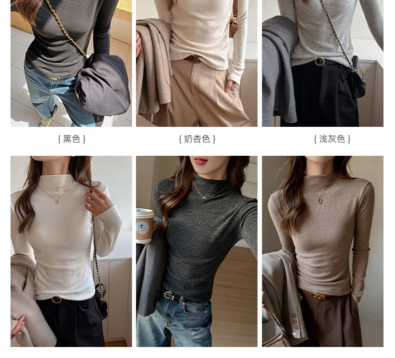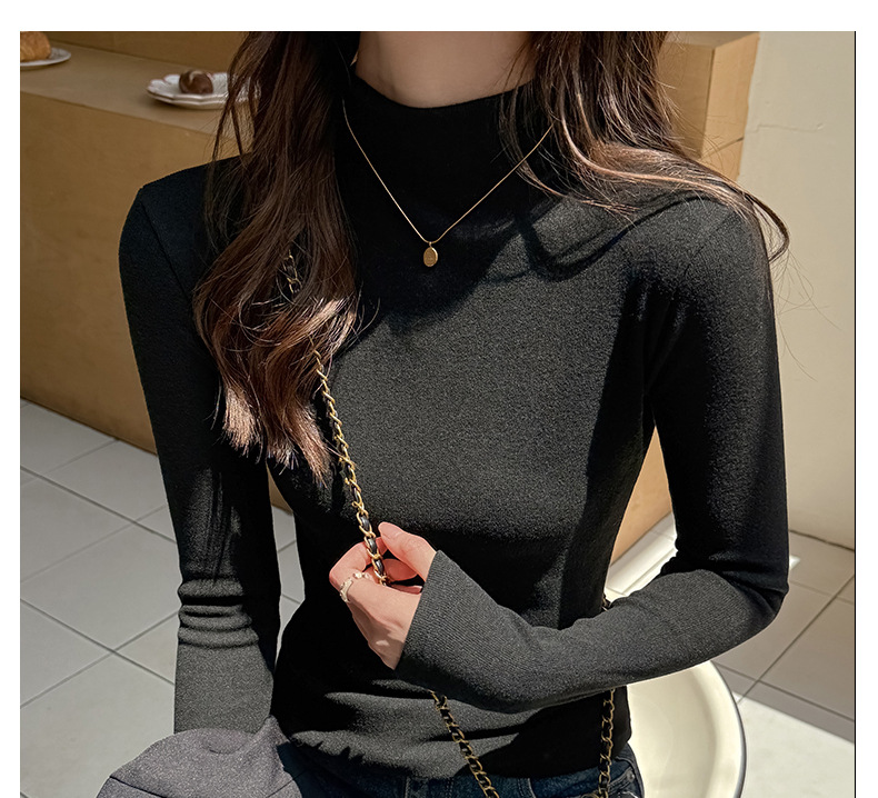 Футболка из имитации кашемира для женщин осень-зима, полуворотник, длинный рукав, универсальная и удобная топ-футболка с воротником средней высоты