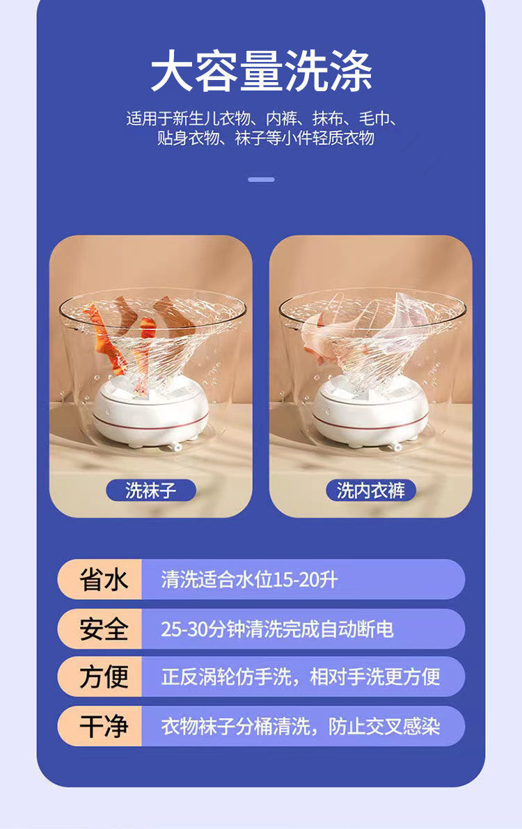 Кросс-бодер ультразвуковая мини стиральная машина, автоматическая турбина, портативная машина для чистки в общежитии, маленькая машина для стирки нижнего белья