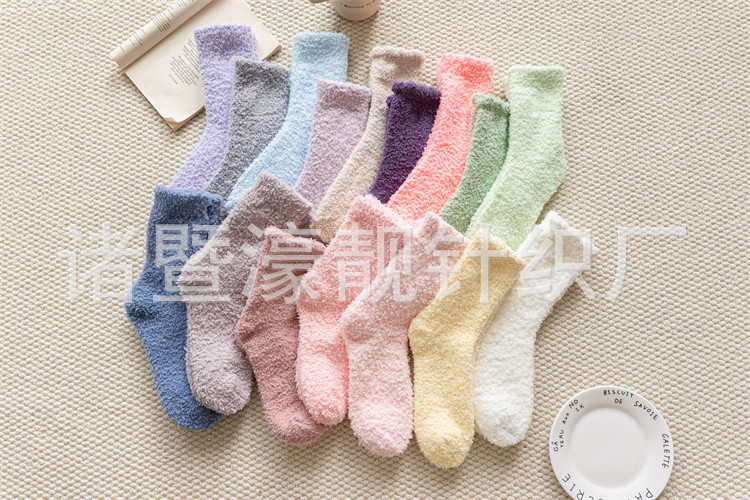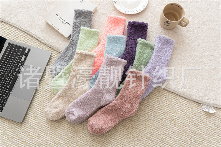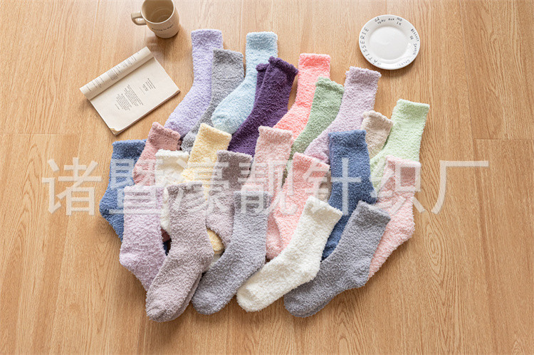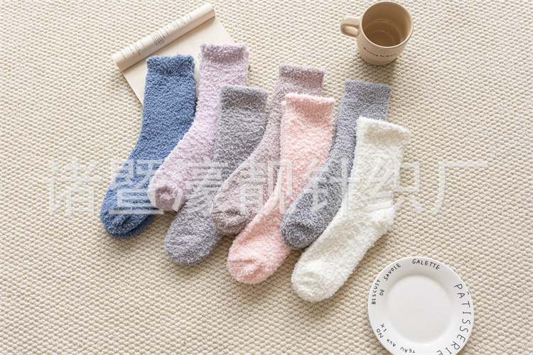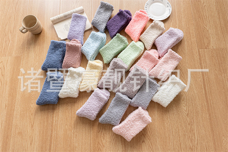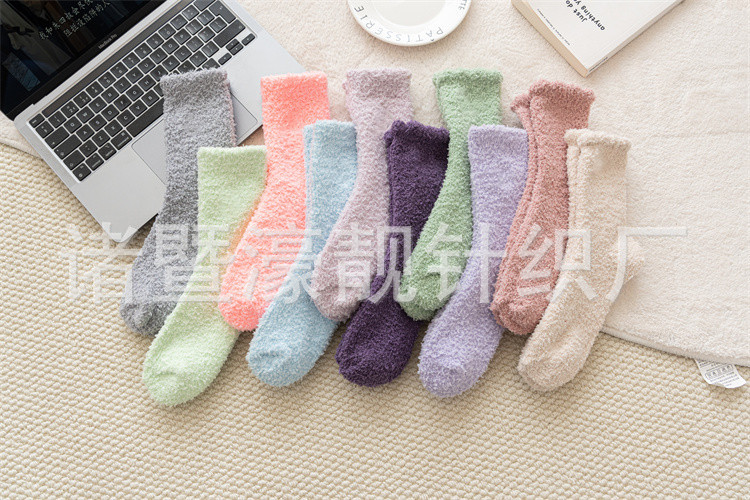 【产品名称】糖果色珊瑚绒女袜 不掉毛工艺
