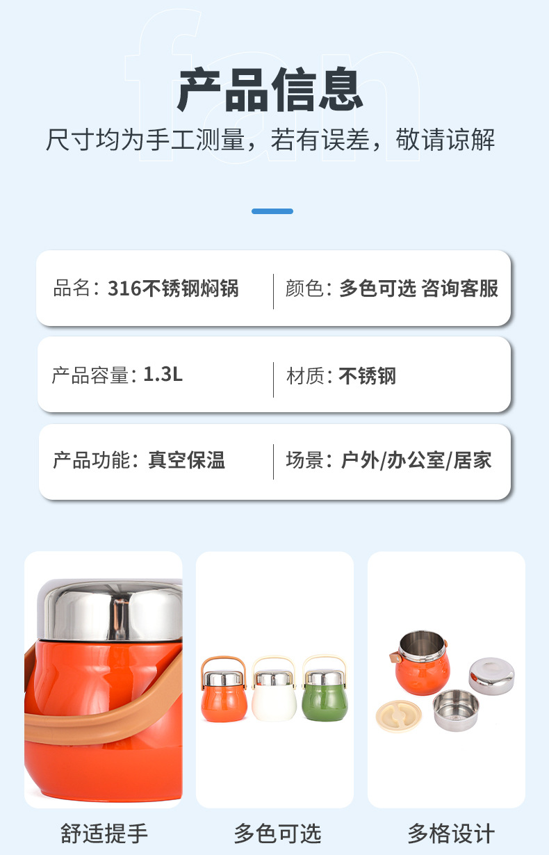 Кастрюля для тушения большой ёмкости из нержавеющей стали 316, портативный ланч-бокс с ручкой, многослойный изолированный ланч-бокс для офисных работников, портативное ведро