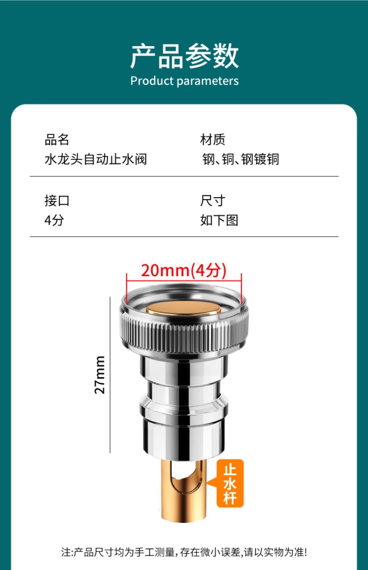 ![]() | 4-point copper core automatic water stop valve | ¥0.8 / ≈ 10 ₽ | 2420129 | 5934443924717 |