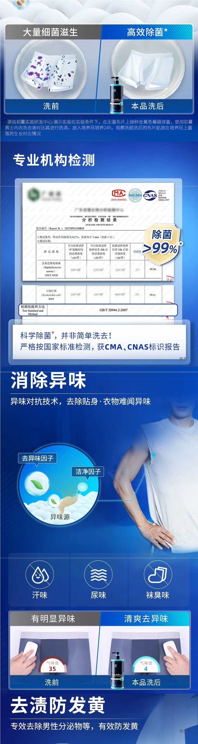 Моющее средство для мужского нижнего белья, жидкость для стирки интимных вещей для удаления запаха, предотвращения пожелтения, удаления бактерий, освежения и оставления аромата для мужчин