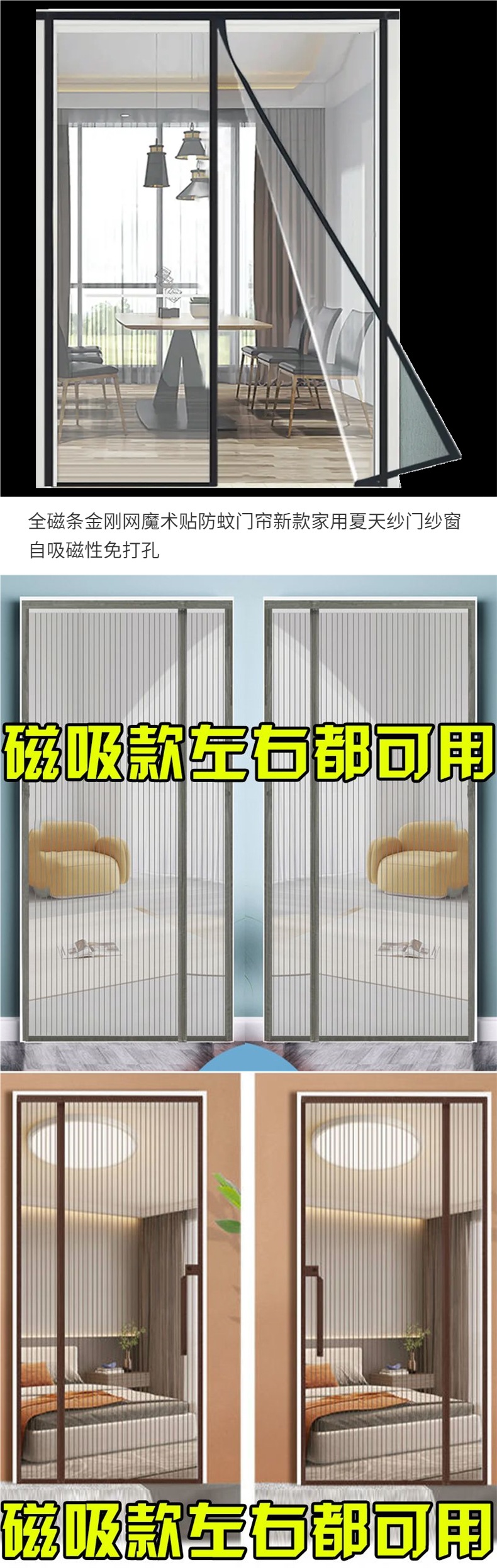 Полная магнитная блокирующая алмазная сетка, антимоскитная занавеска для двери нового дома, летняя экранная дверь, самовсасывающаяся магнитная, без пробивки