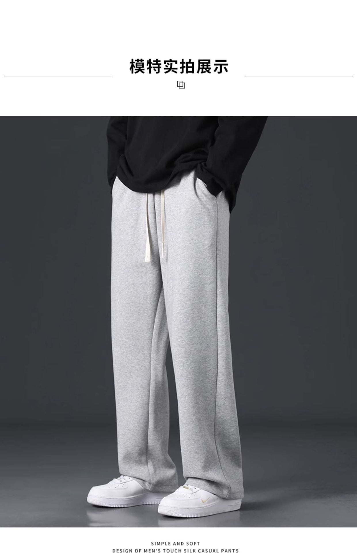 Прямые спортивные брюки для мужчин, модные осенние и зимние, новые свободные флисовые толстые брюки с широкими штанинами, прямая продажа с фабрики