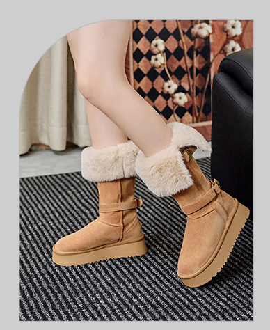 Замшевые женские ботинки, зимние сапоги с двусторонним ношением, новые осенние и зимние короткие сапоги 2025 года с толстой подошвой, теплые хлопковые сапоги для снега