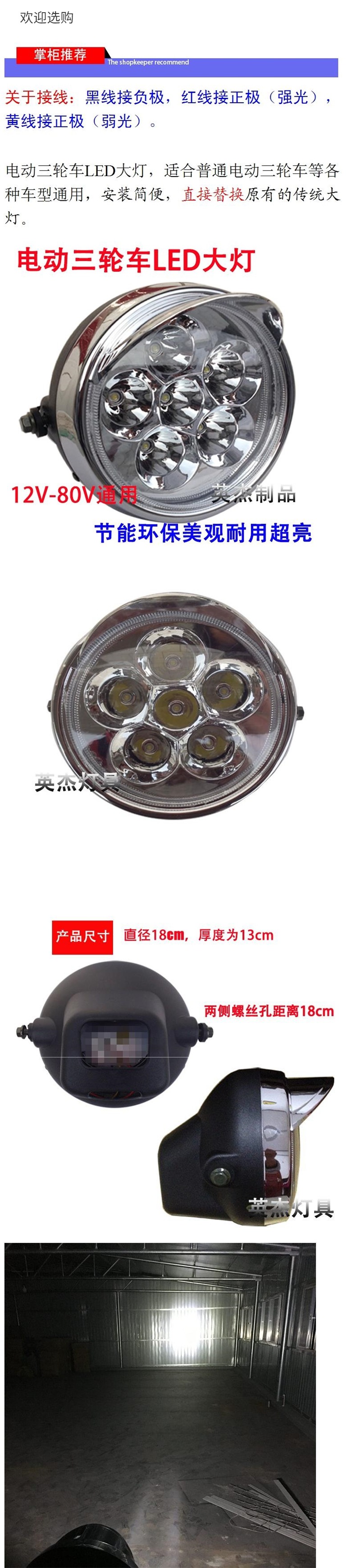 Бесплатная доставка супер яркий и прочный универсальный светодиодный фонарь для электрического трицикла 12V-80V модификация аксессуары