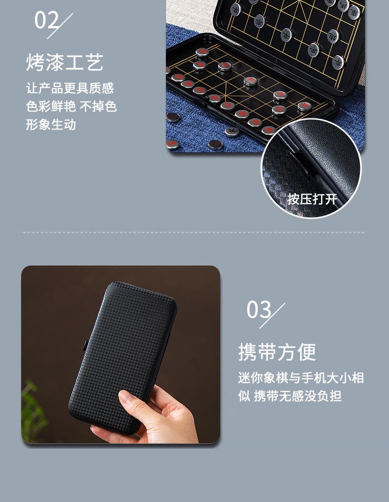 ![]() | Elegant black丨magnetic portable mini chinese chess set | No specifications | ¥12.8 / ≈ 155 ₽ | 999995 | 6100963522099 | |