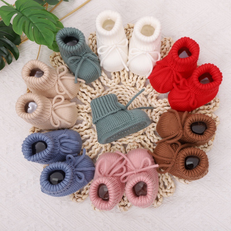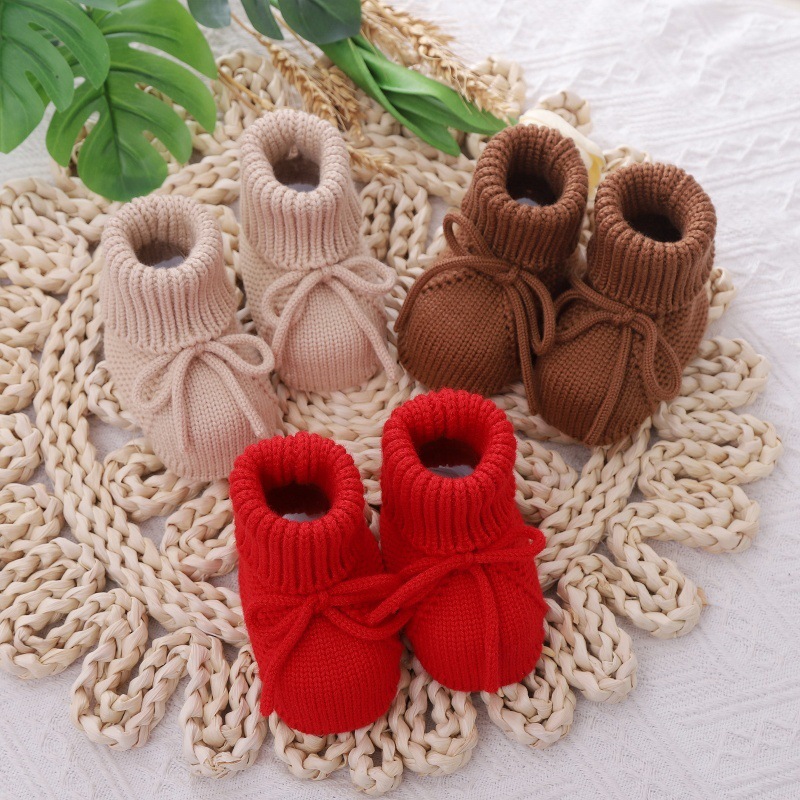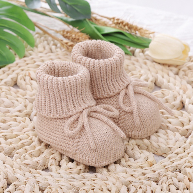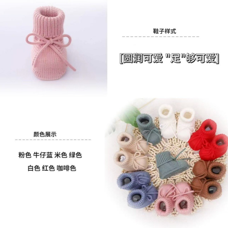 • 材质与工艺:采用柔软亲肤的针织材质,手工感十足,做工精细,温柔包裹宝宝稚嫩双脚,呵护足部发育。