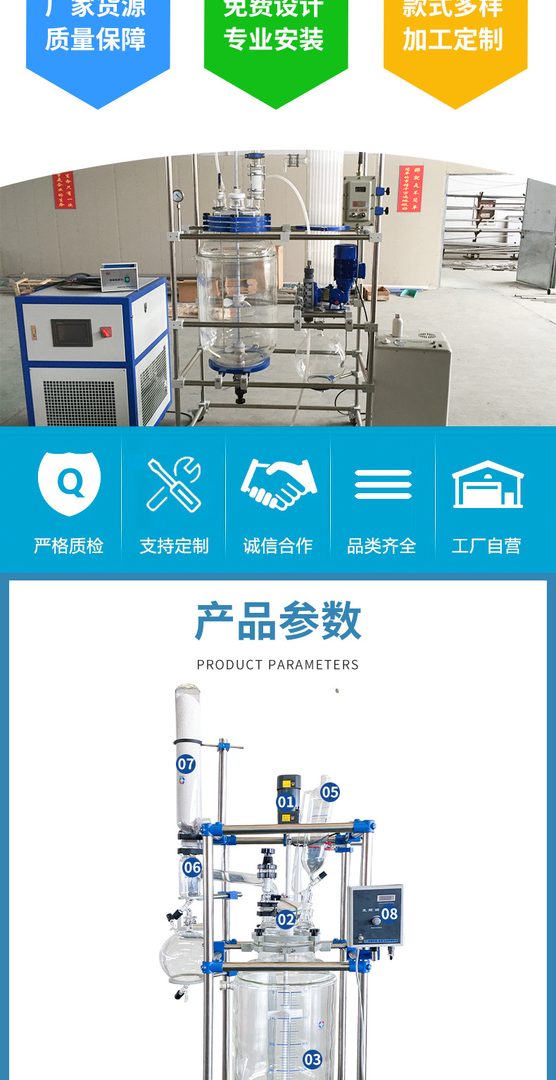 Двухслойный стеклянный реактор, вакуумный дистилляционный реактор с высоким и низким температурным режимом, реактор для химического перемешивания и растворения, из нержавеющей стали