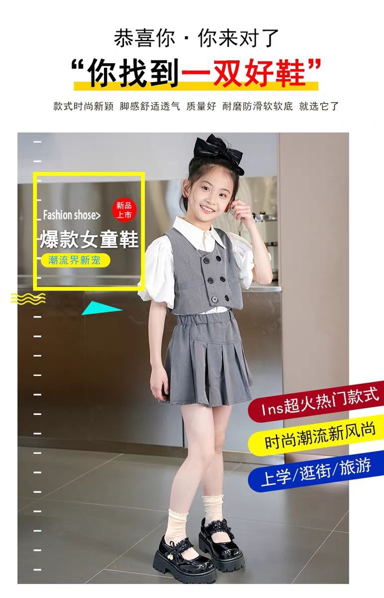 Кожаные туфли для девочек 2025 весна и осень новые модные легкие в сочетании детские кожаные туфли черные производственные туфли для средних и крупных девочек