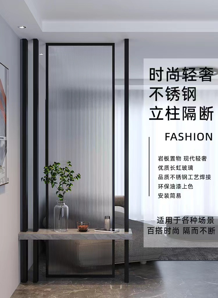 Перегородка из кованого железа и стекла, простая для гостиной, входа, современный легкий роскошный экран из нержавеющей стали