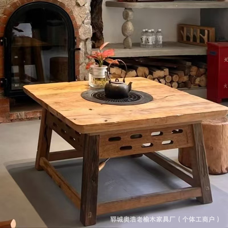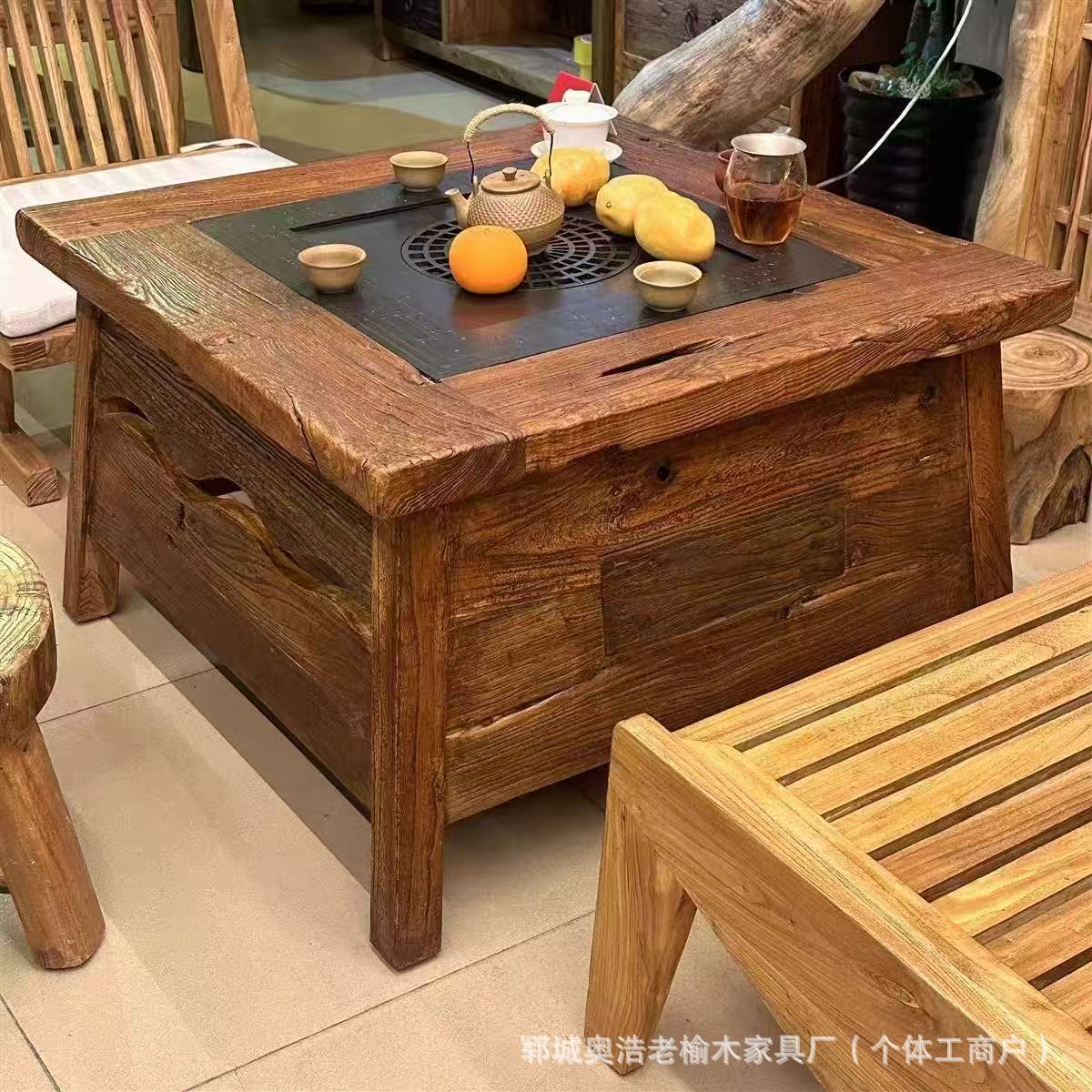 Стол для чая из старого вяза, уличный стол для горячего котла, балконный стол для барбекю, обеденный стол из массива дерева, кофейный столик