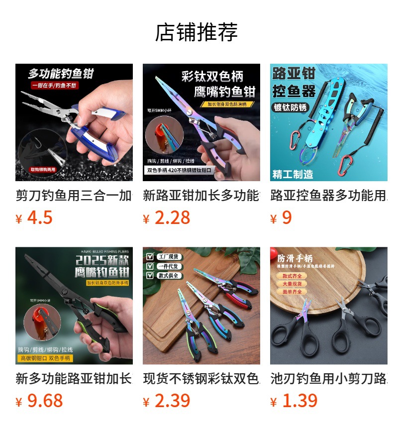 ![]() | Multifunctional lure pliers-basket color | ¥2.83 / ≈ 34 ₽ | 9899 | 5937747852194 | |