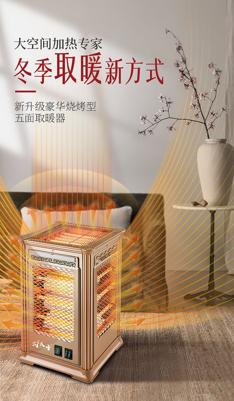 Обогреватель с пятью сторонами для домашнего использования, барбекю типа маленький электрический вентилятор, четырехсторонний электрический гриль