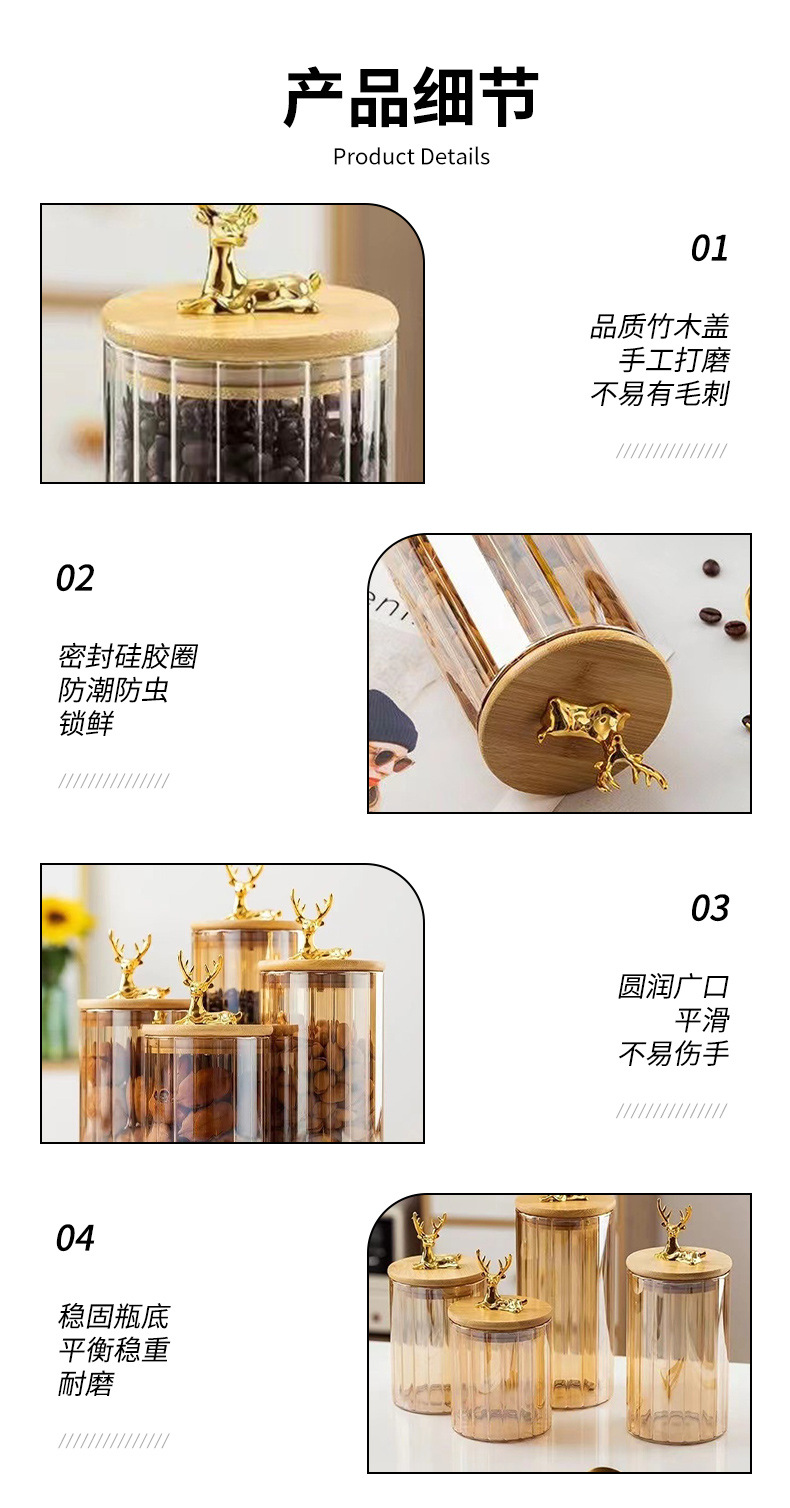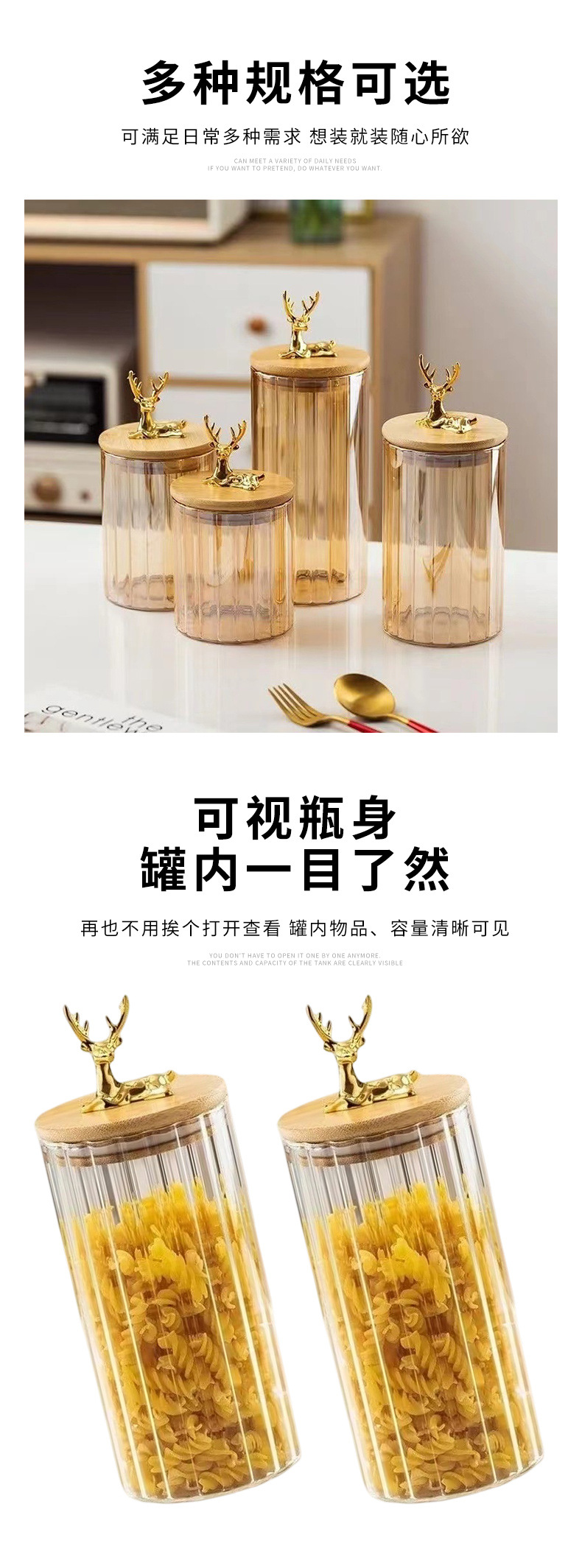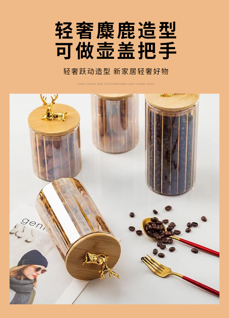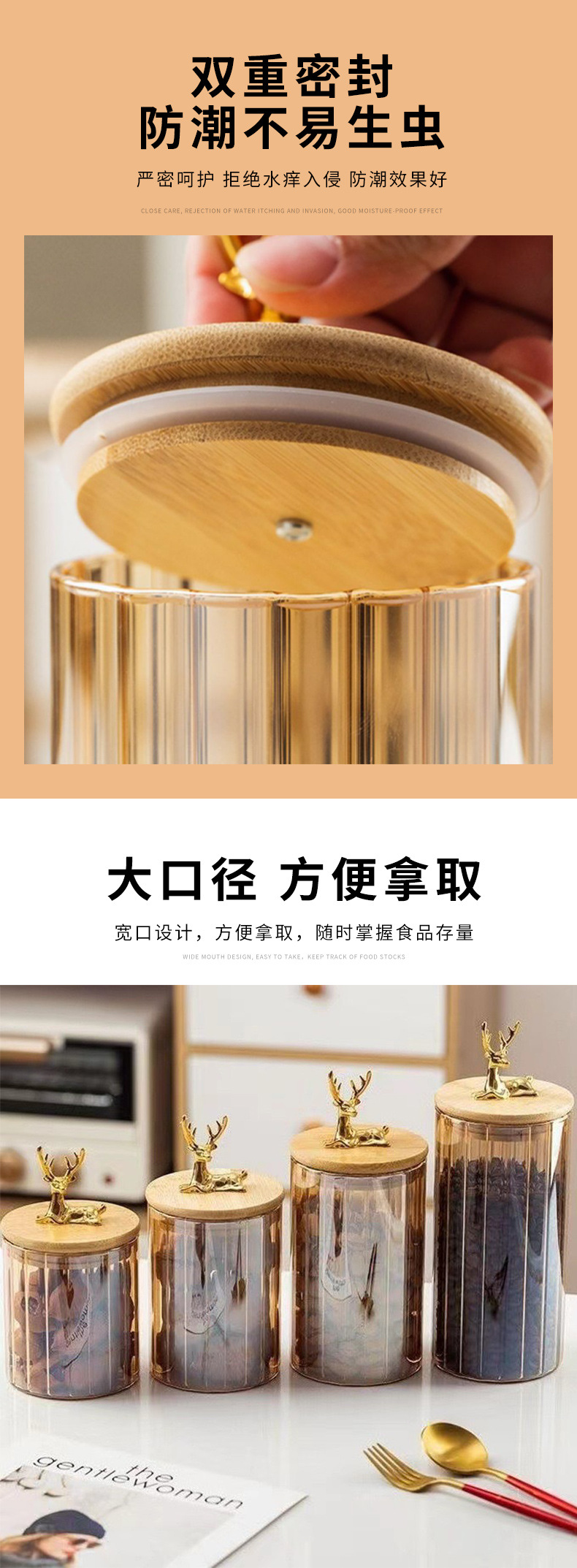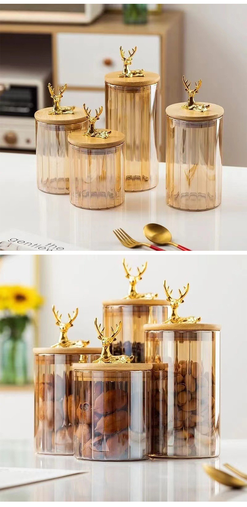 Герметичная банка для чая с оленем, из боросиликатного стекла, янтарная банка для конфет, с бамбуковой крышкой, банка для закусок и кофе