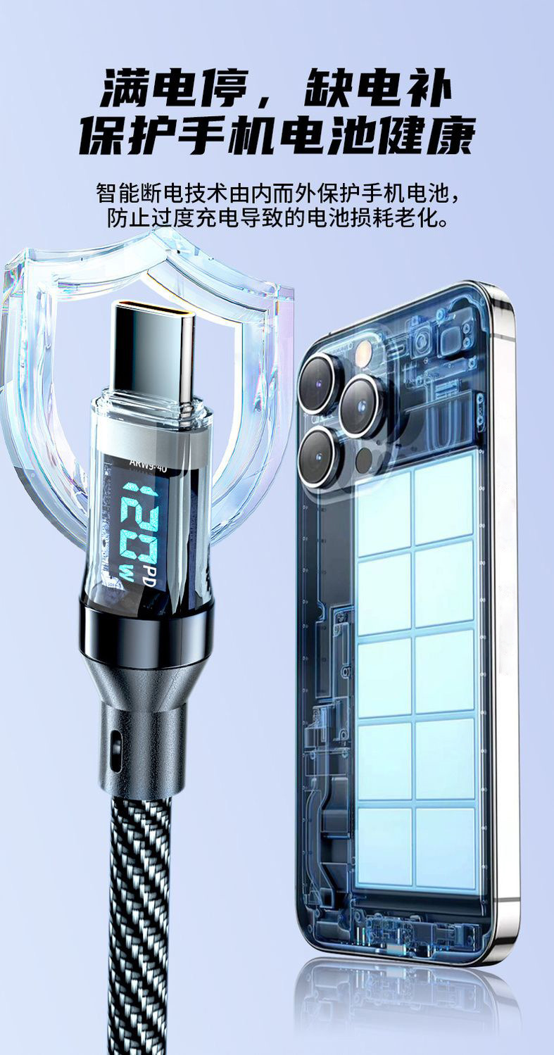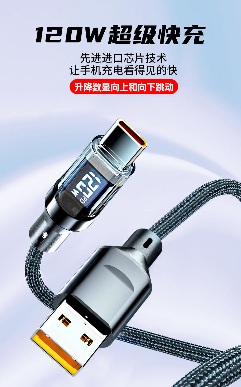Кабель для быстрой зарядки 120W с цифровым дисплеем для Apple 15/16 Huawei Vivoppo Honor