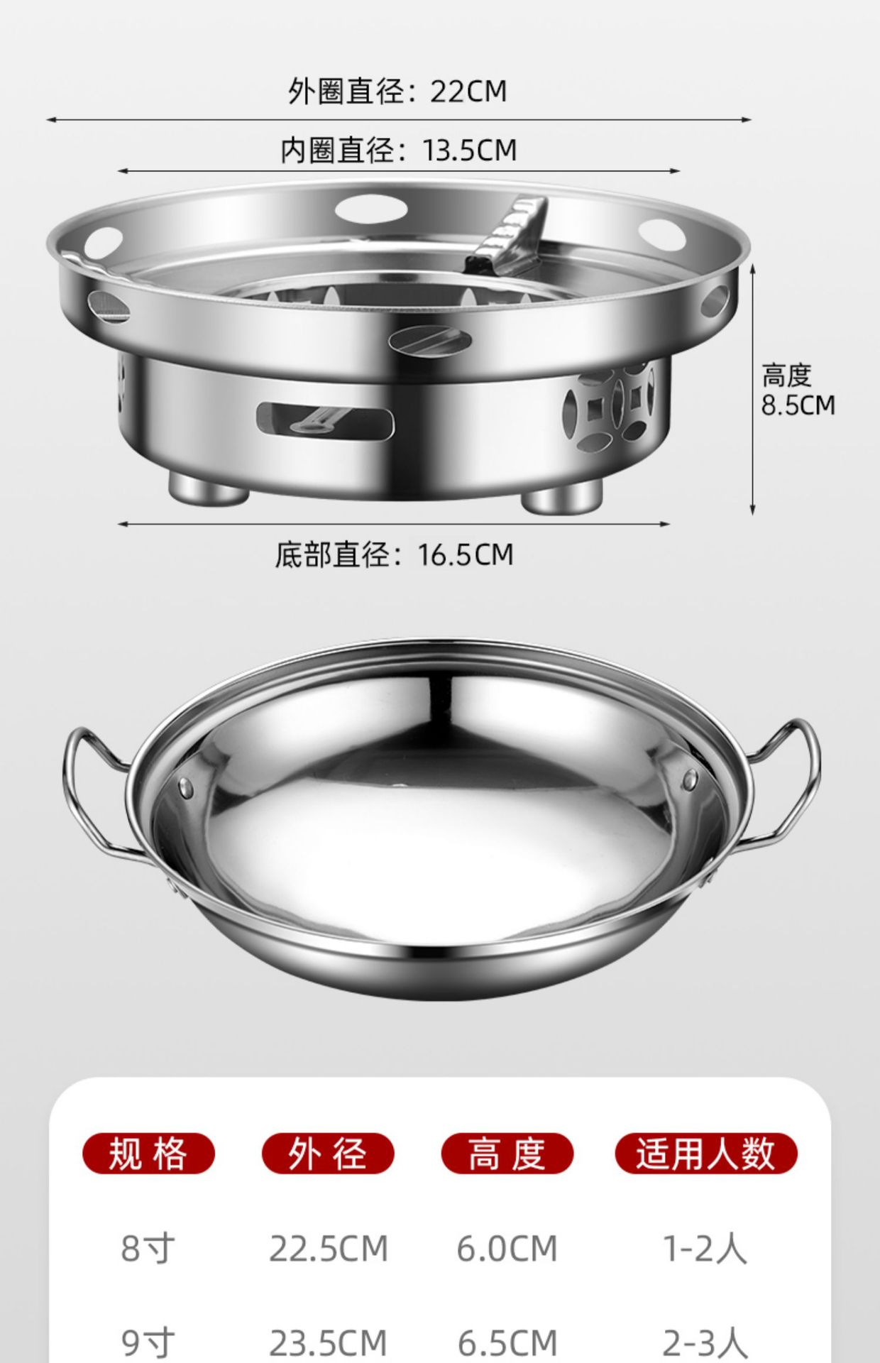 ![]() | Windproof alcohol stove + 22cm hot pot (without lid) | ¥24.55 / ≈ 296 ₽ | 98434 | 6103351259014 | |
