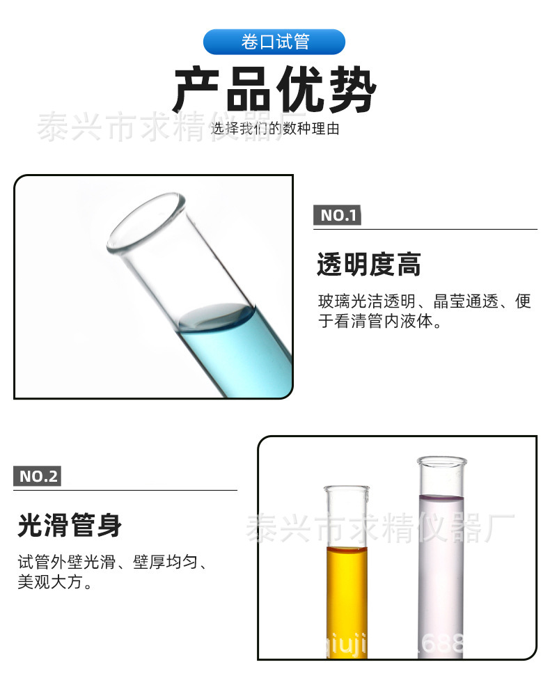 Стеклянные пробирки с закатанными краями и круглым дном, внешний диаметр 15*100мм