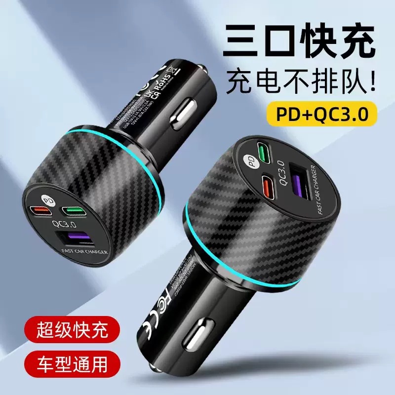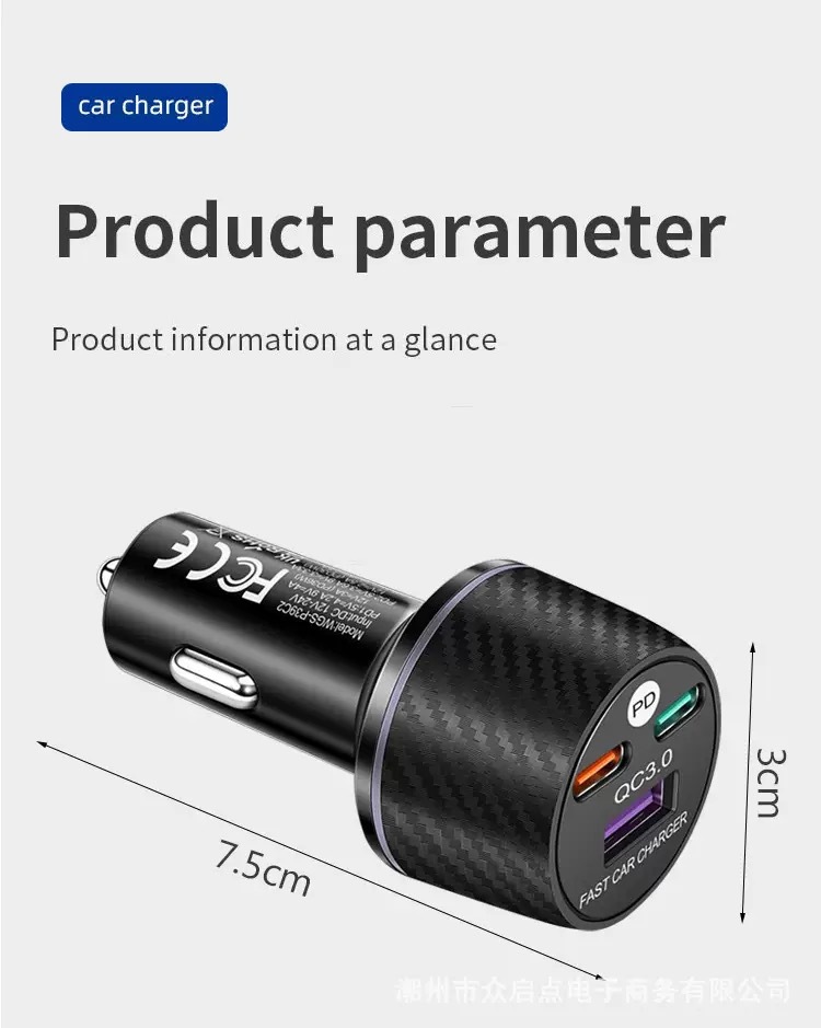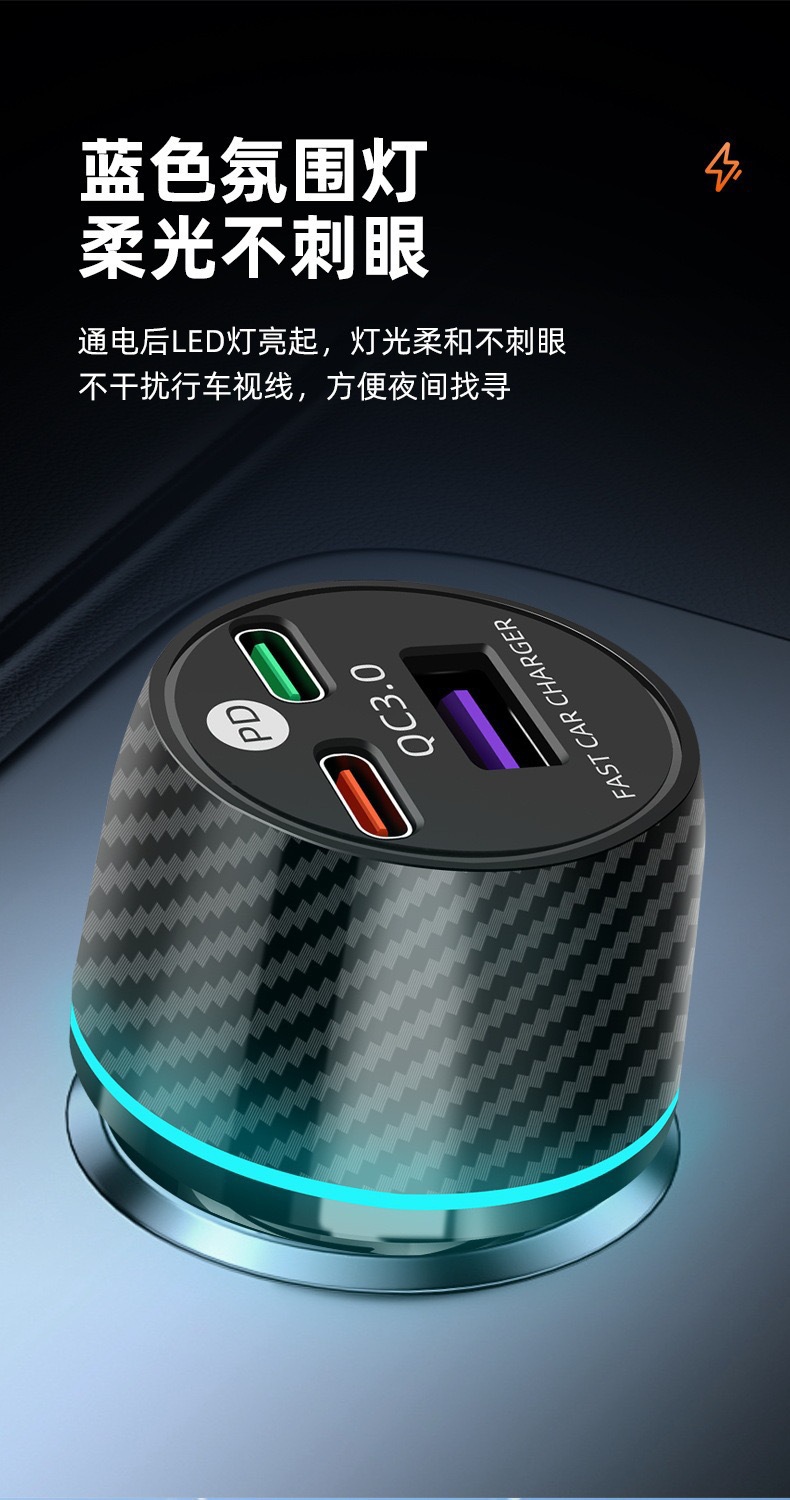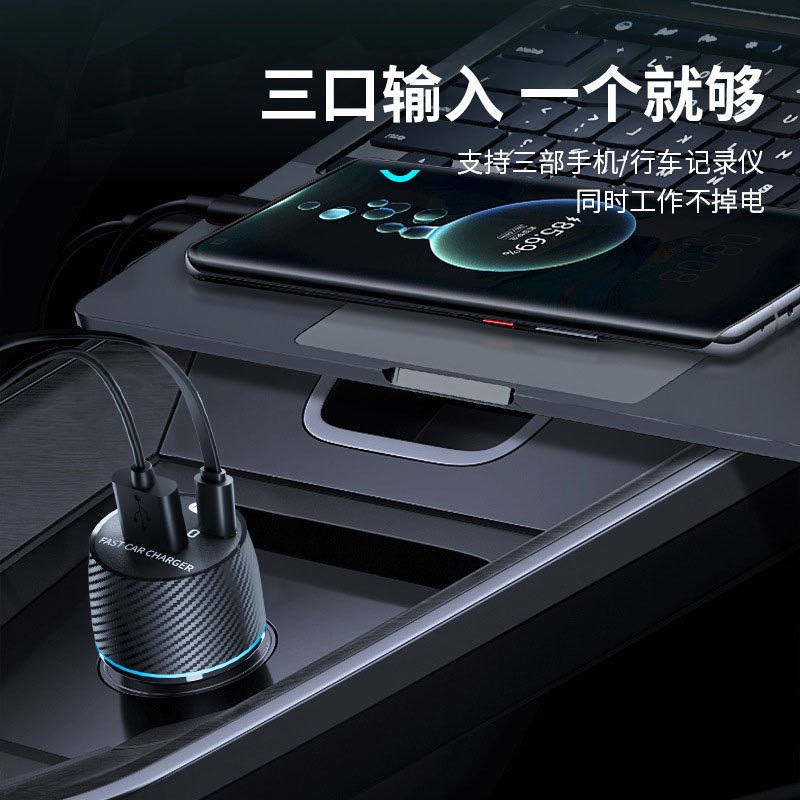Новое автомобильное зарядное устройство из углеродного волокна, 3.1A и быстрая зарядка 66W