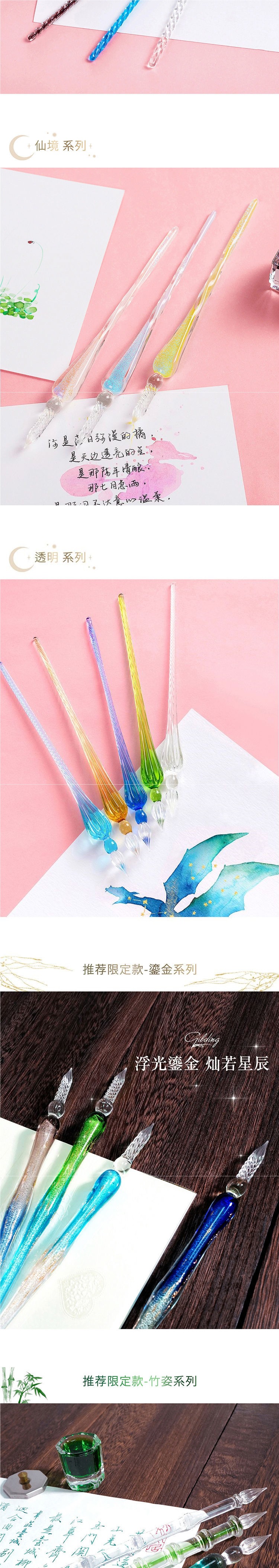 Ограниченная серия, стеклянная перьевая ручка Elf, 12 цветов, с цветными чернилами, подарок для студентов, практика каллиграфии