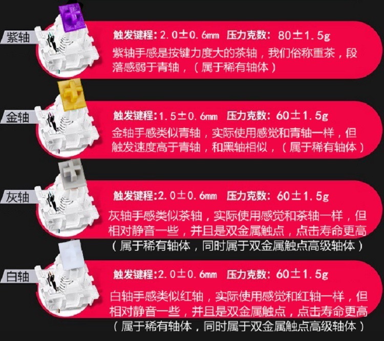![]() | High special white axis (double contact-silent axis) | ¥0.79 / ≈ 10 ₽ | 199942 | 5938338253275 | |