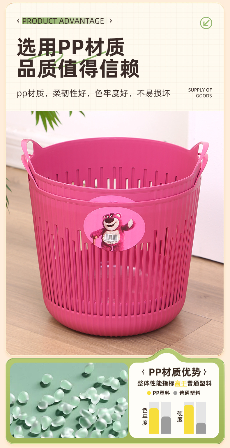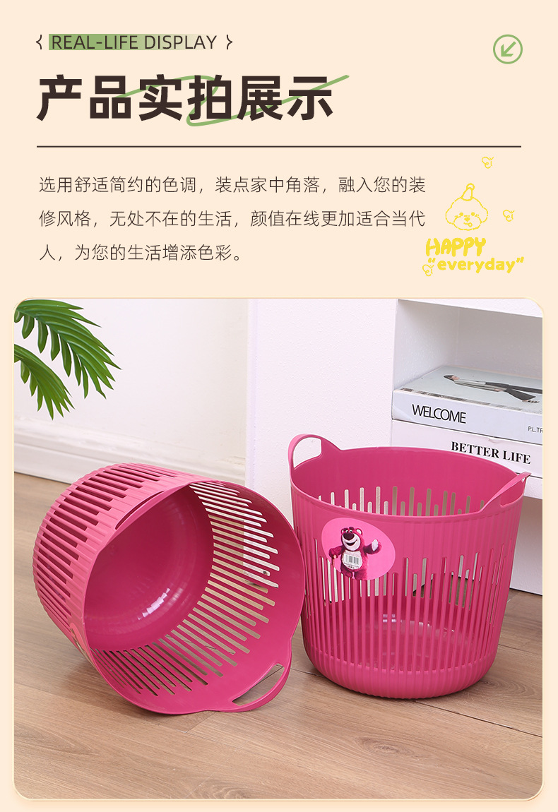 Пластиковая портативная полая корзина для грязного белья, толстая корзина для хранения мусора, круглая корзина для грязного белья для ванной