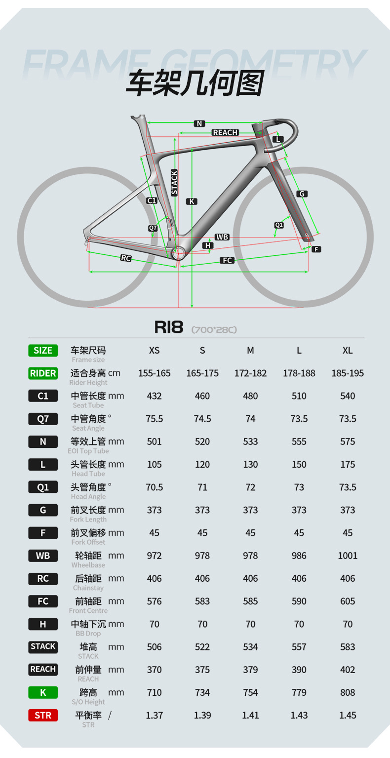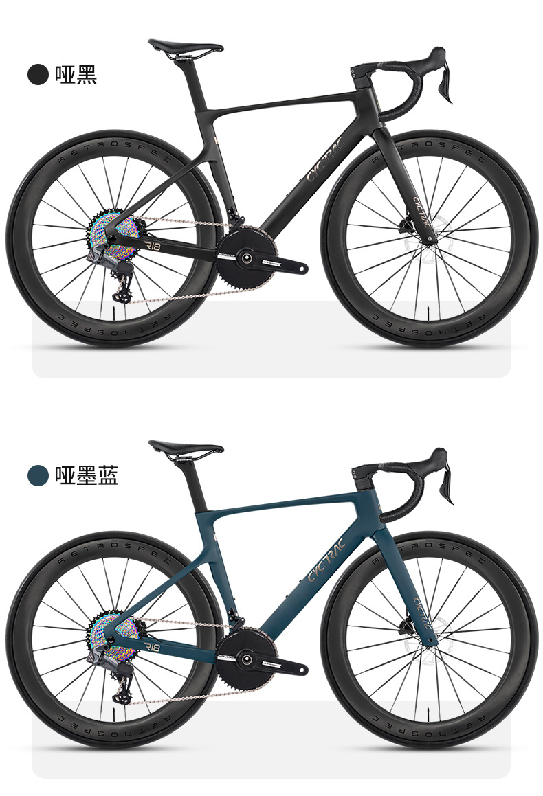 【车架】:R18(碟刹桶轴12*142) 高模量碳纤维T800&T1000/破风竞速/内走线/UDH