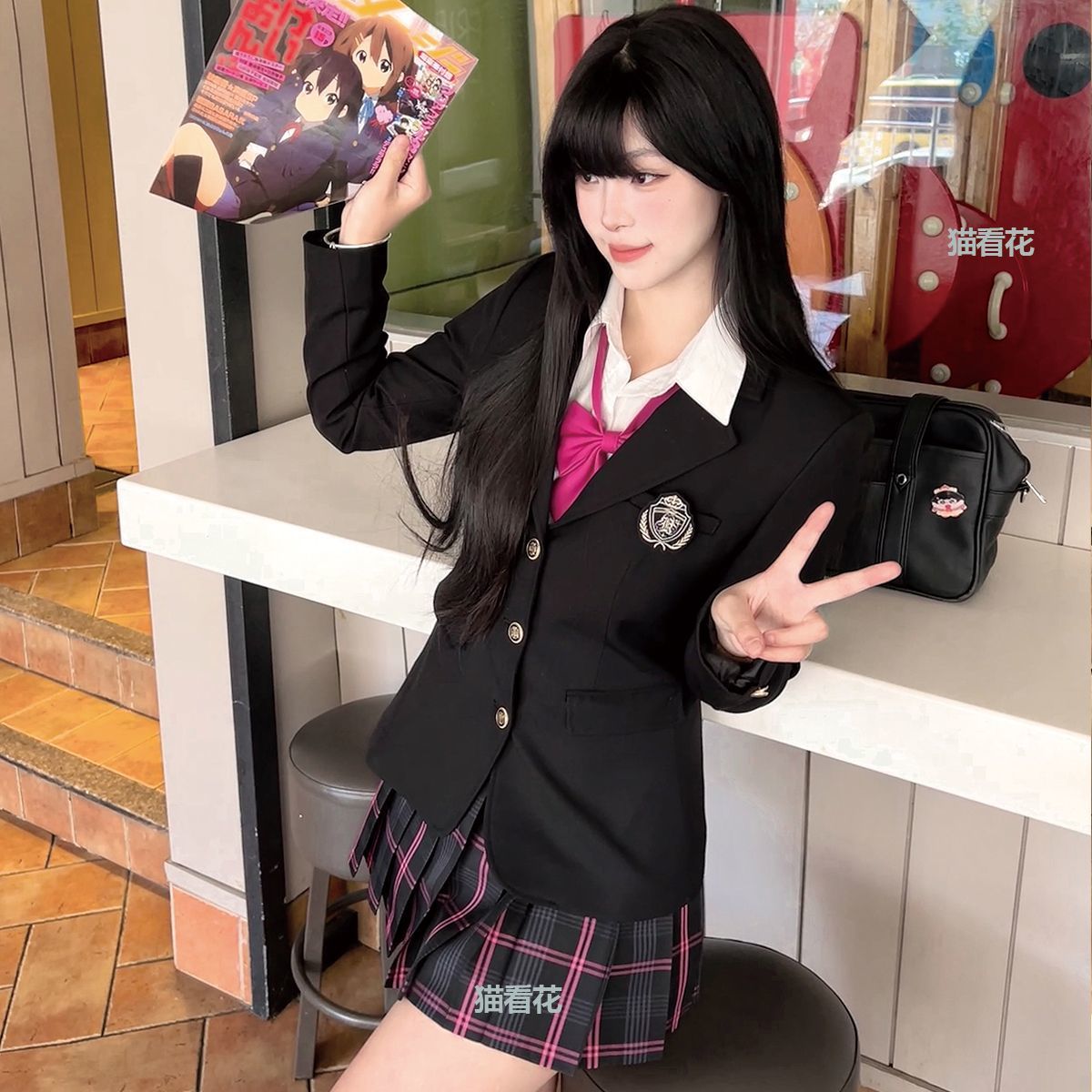 Костюм с завышенной талией и цветочным узором в стиле JK, три пуговицы, насыщенный циановый цвет, стиль колледжа, подходит для весны и осени