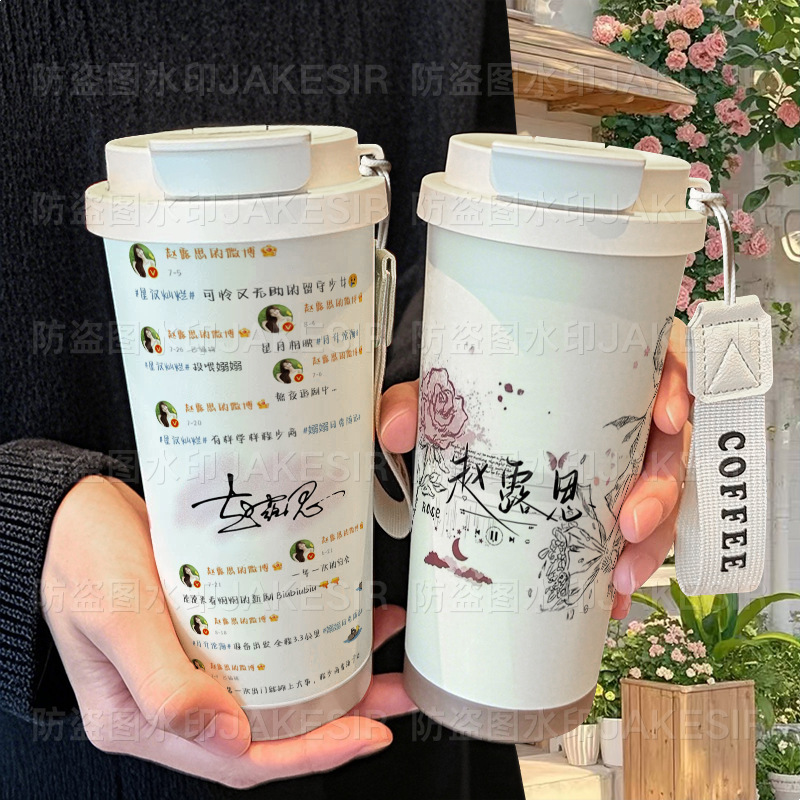 Термокружка Yan Zhao Lusi с поддержкой, 316 нержавеющая сталь, большая емкость, с соломинкой, автомобильная кружка для кофе для мужчин и женщин