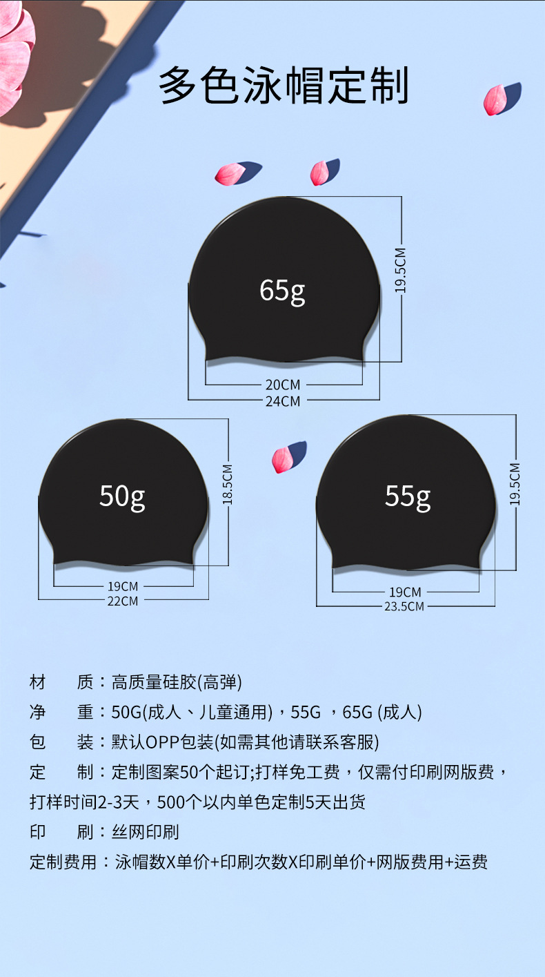 Силиконовая шапочка для плавания, водонепроницаемая и не растягивающаяся, большого размера, для мужчин и женщин с длинными волосами, 50 г, шапочка с индивидуальным логотипом