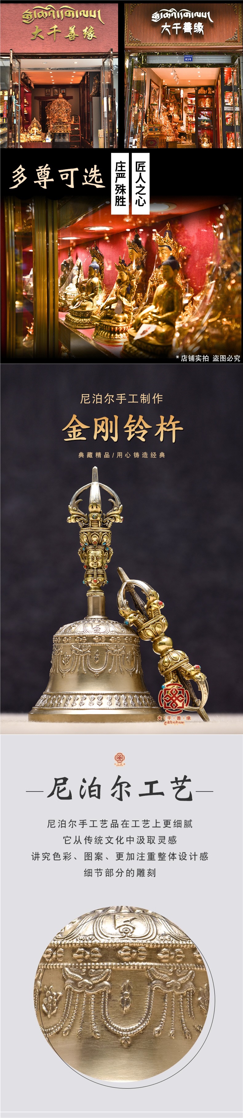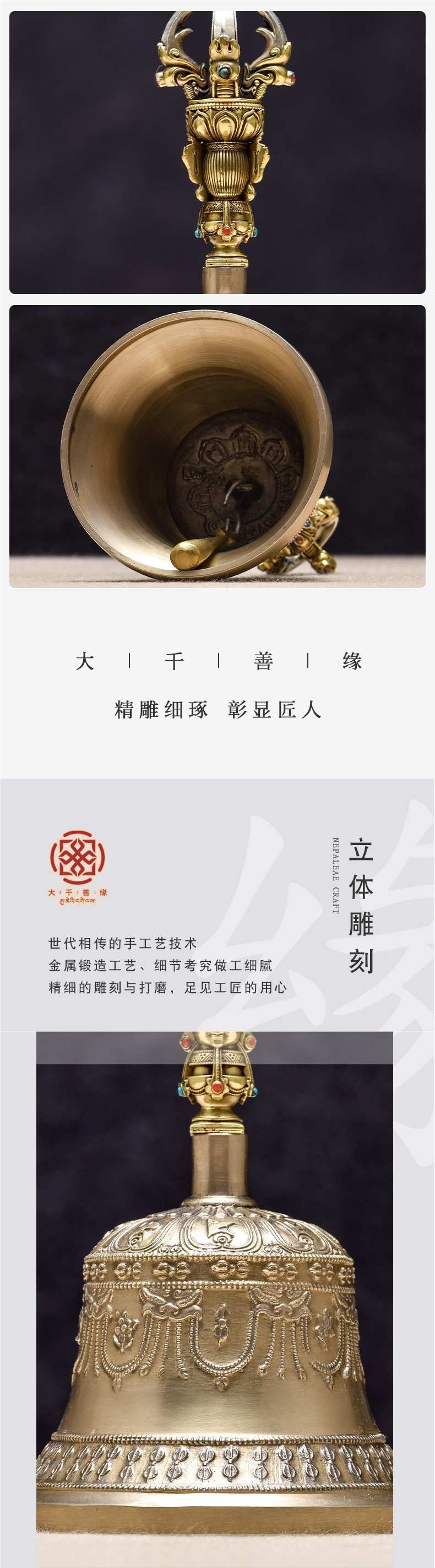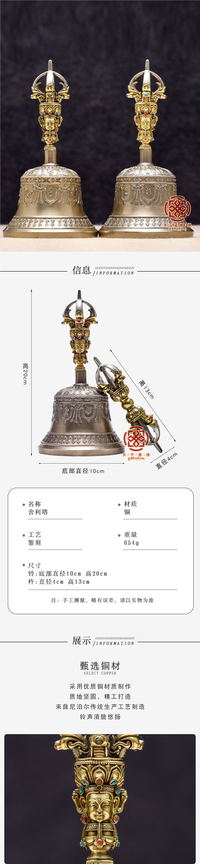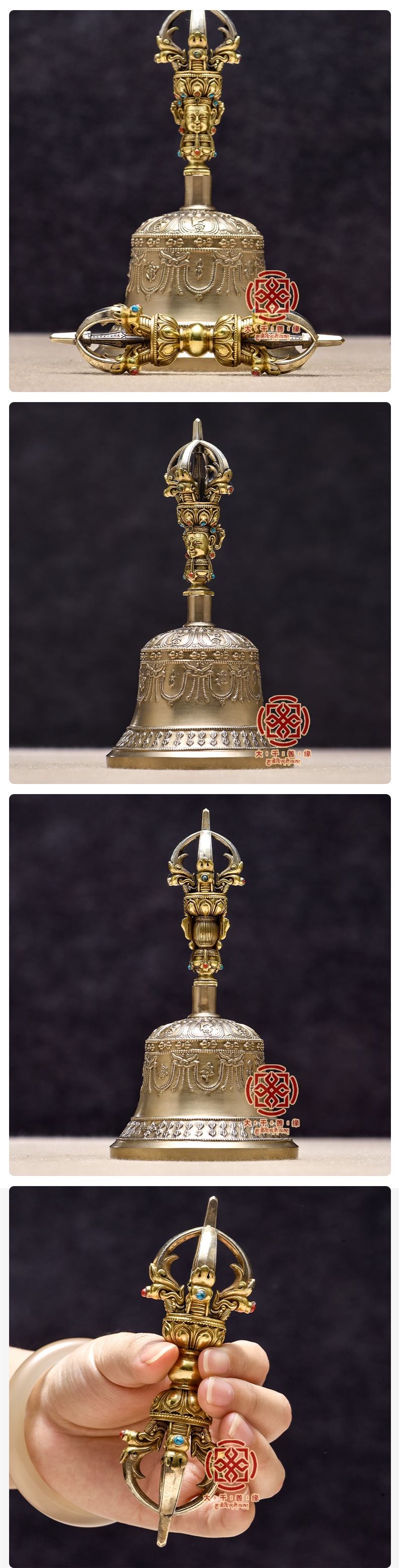 Импортированный чистый ручной медный пестик Ваджра с пятью струнами, портативный колокольчик
