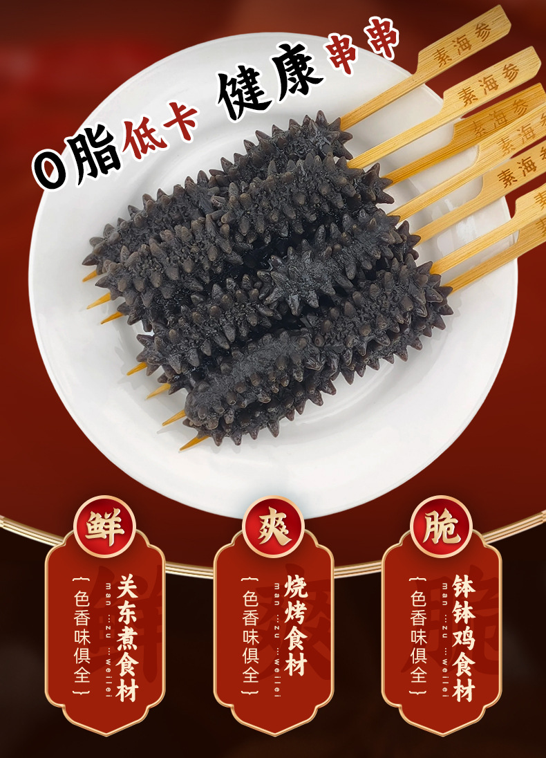 Кейтеринг и коммерческий вегетарианский морской огурец из конжака Konjac and sea cucumber vegetarian catering, chain restaurant konjac and sea cucumber - oden skewers, bobo chicken skewers and sea cucumber, hot pot ingredients konjac and sea cucumber - oden skewers