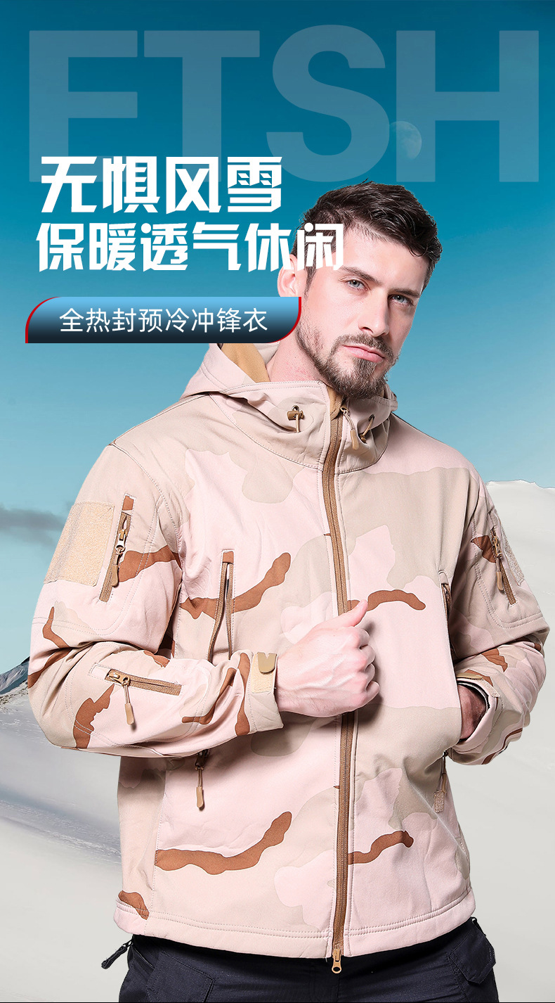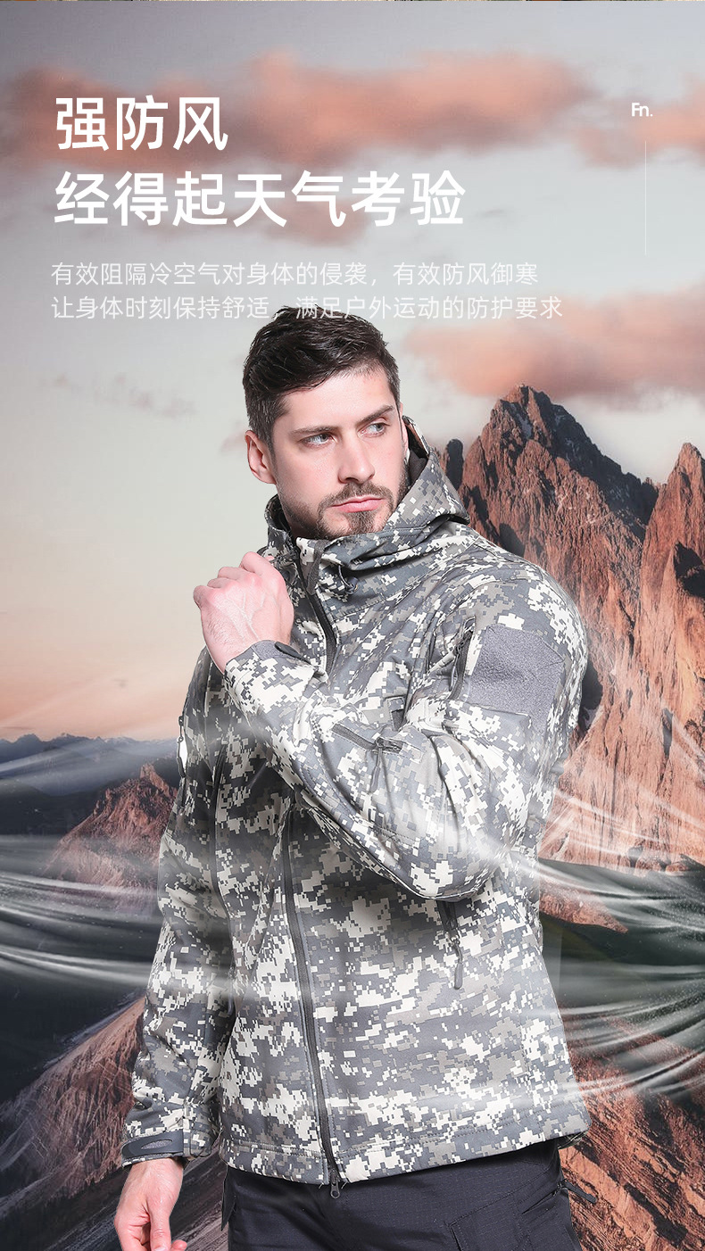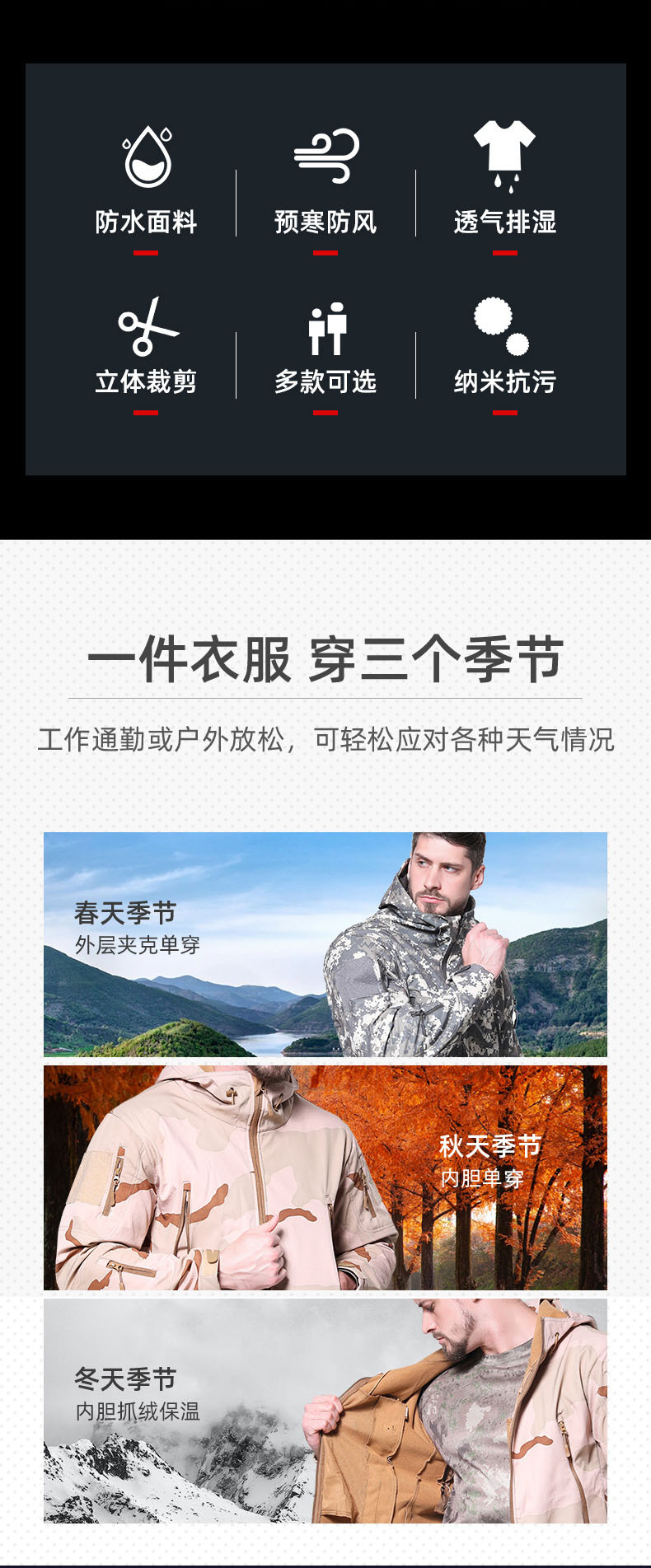 Спортивная водонепроницаемая куртка, мягкийshell, флисовая, теплая, трехв одном, для велоспорта, военной подготовки, мужской стиль