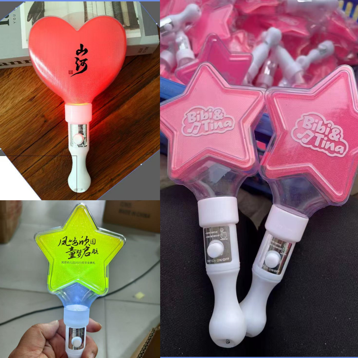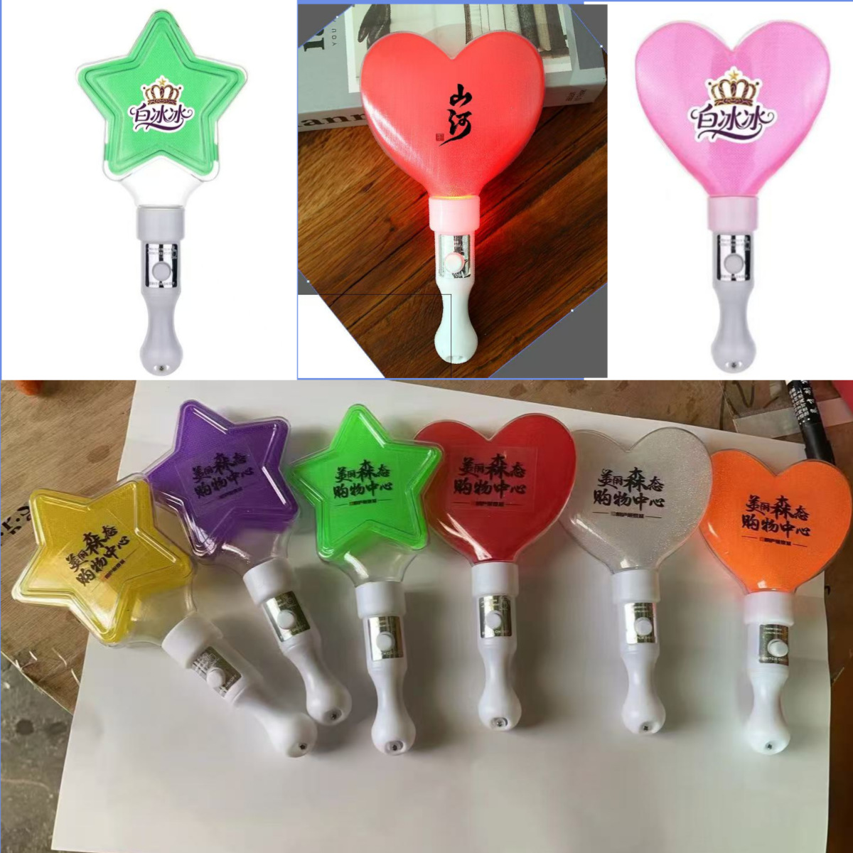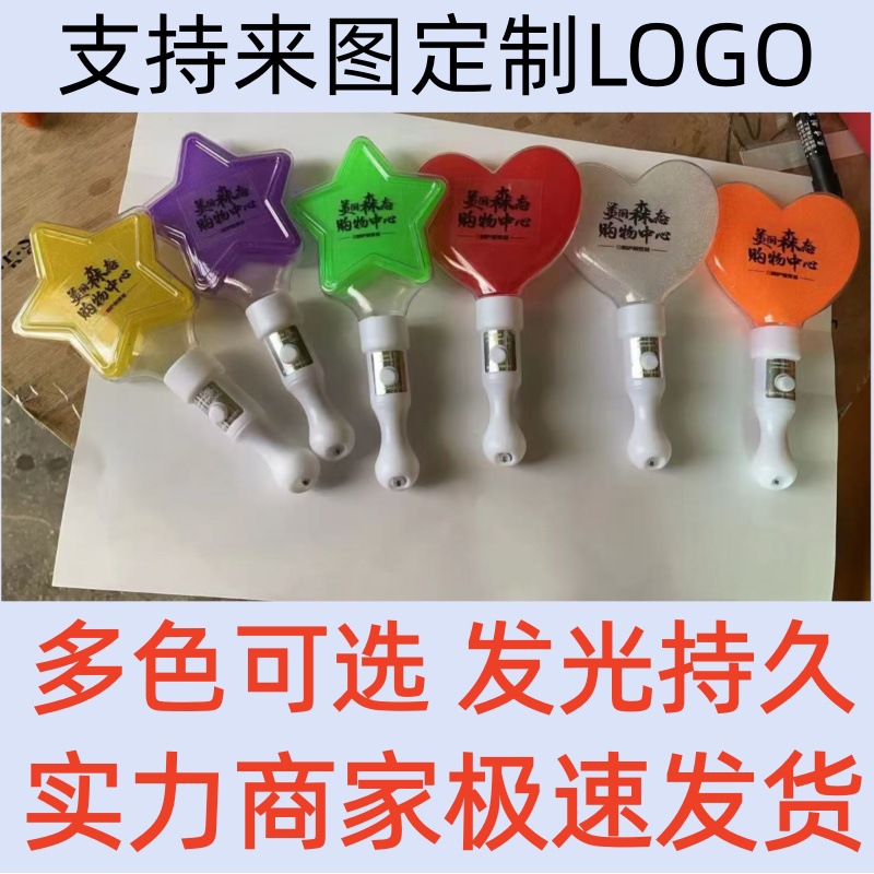 Оптовая продажа светящихся палочек в форме сердца, звезды для концертов, пятиконечные звезды и сердечные светящиеся палочки с напечатанным логотипом