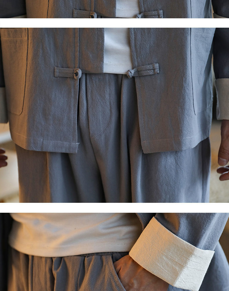 Трехкомпонентный костюм тан, традиционная одежда для мужчин, тайцзи, костюм для средних и пожилых, монашеская одежда с пряжками, тонкий средний стиль