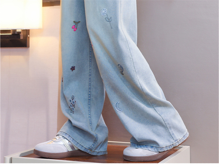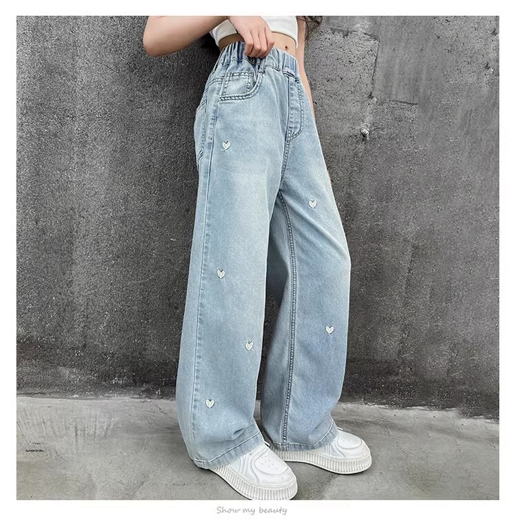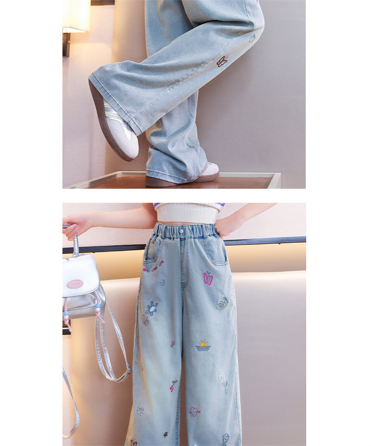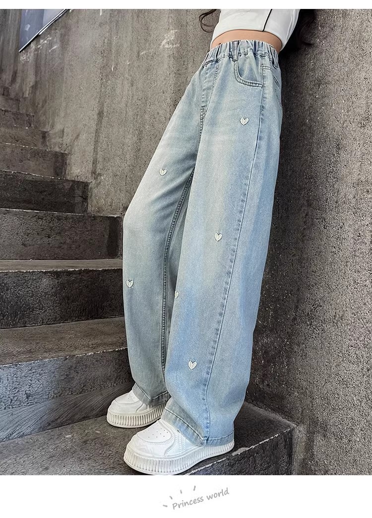 Детские джинсы из тенсела 2025 года, летние, защитные от комаров, стильные, для больших детей, широкие брюки из ледяного шелка