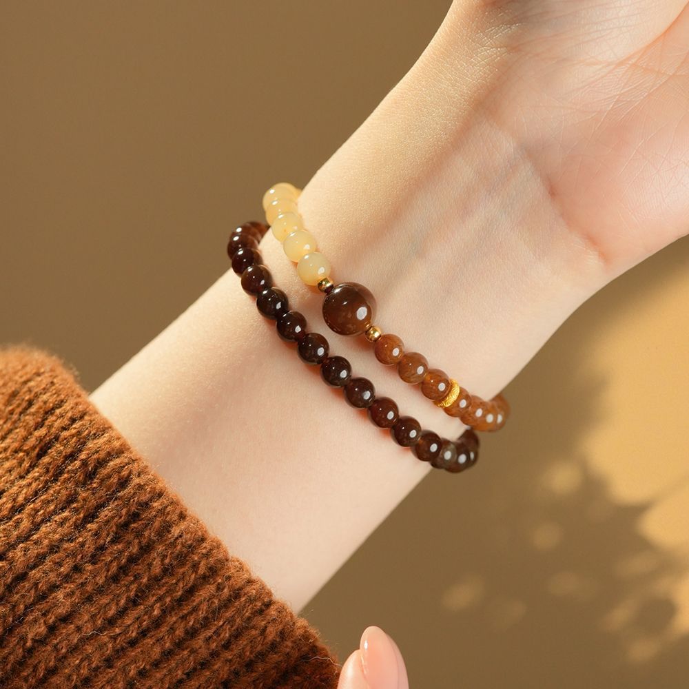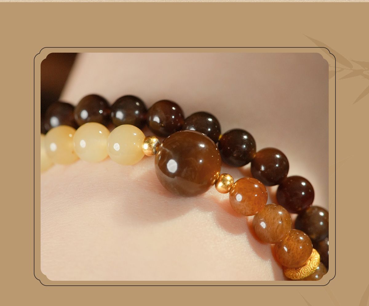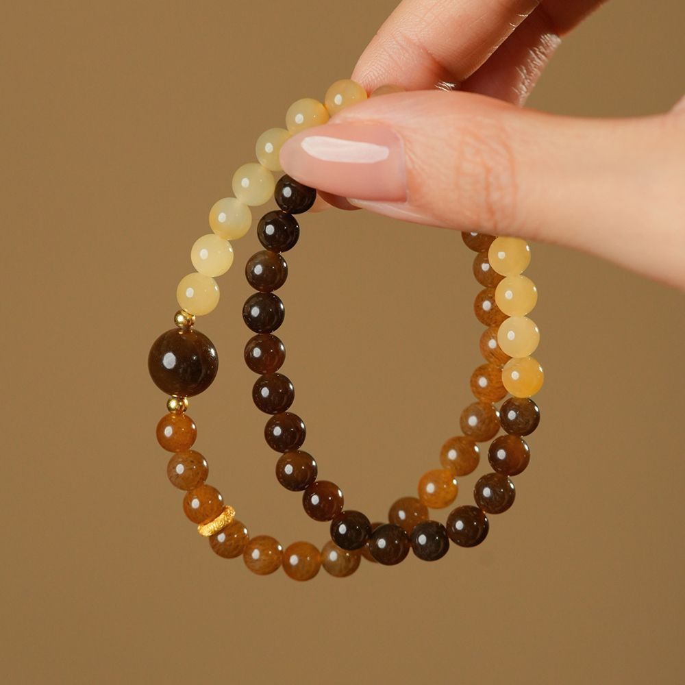 Двойной круглый браслет из сахарного нефрита, коричневый сахарный нефрит и нефрит из Синьцзяна для женщин