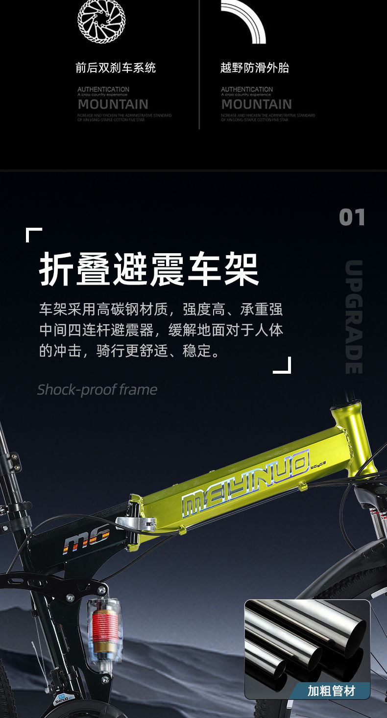 Горный велосипед складной для мужчин и женщин, взрослые, двойной дисковый тормоз, амортизация, переменная скорость, 26 дюймов