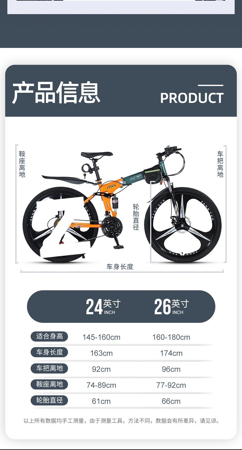 ![]() | Folding new model - broken color and orchid orange - three-knife integrated wheel | 21 speed 26inch new folding logo touchable | ¥616.6 / ≈ 7 507 ₽ | 1000 | 5939053196496 | |