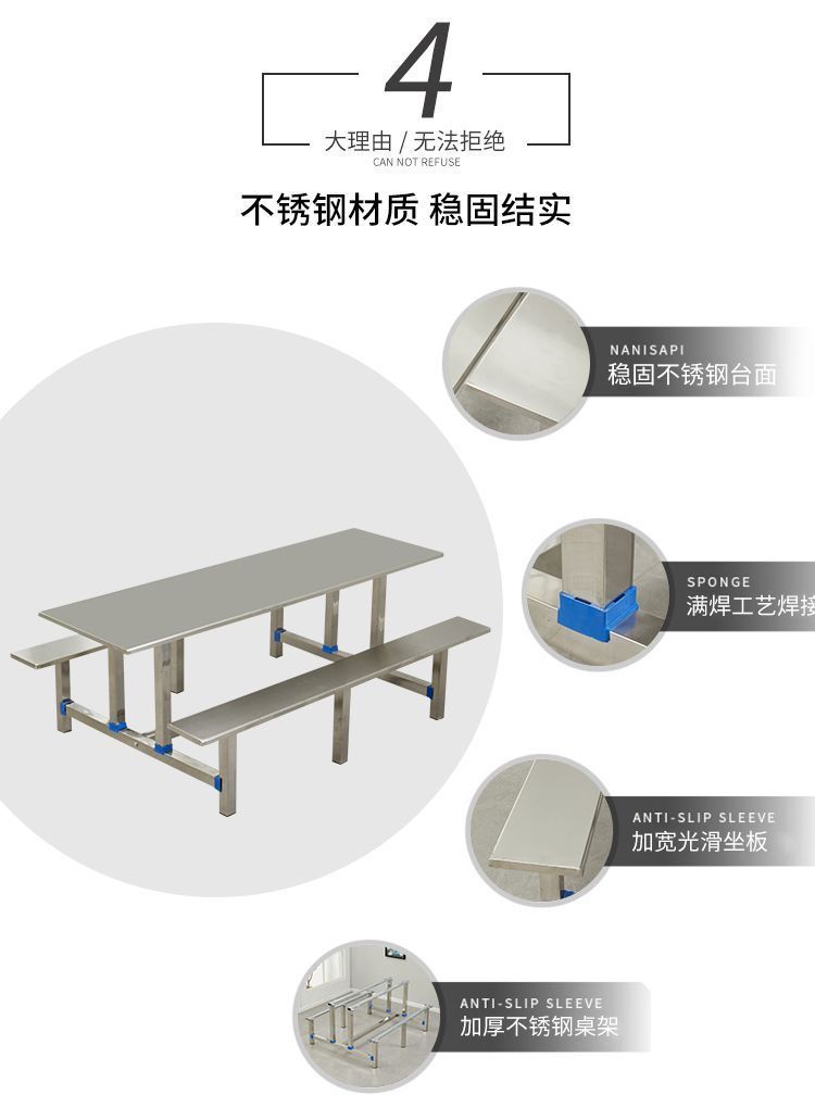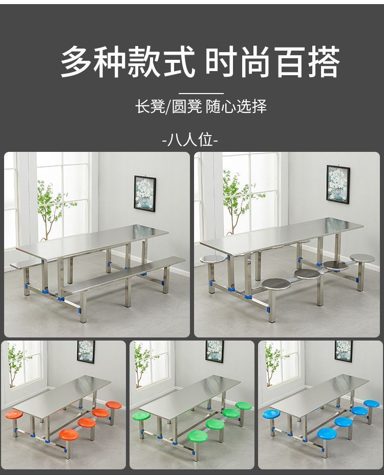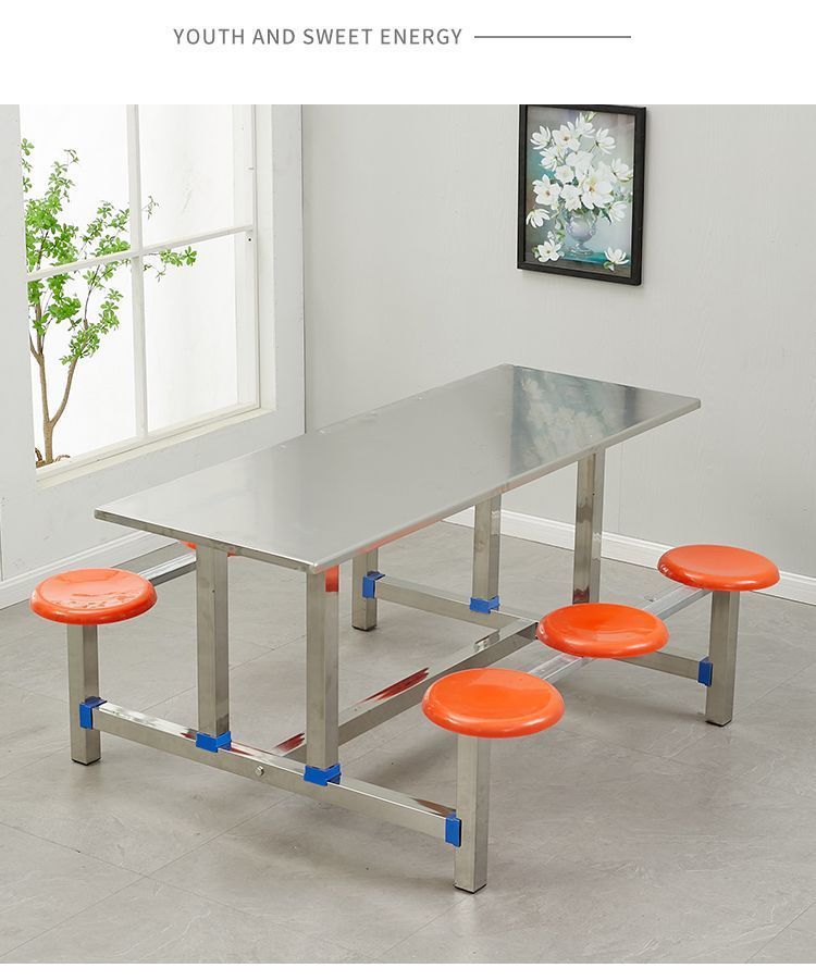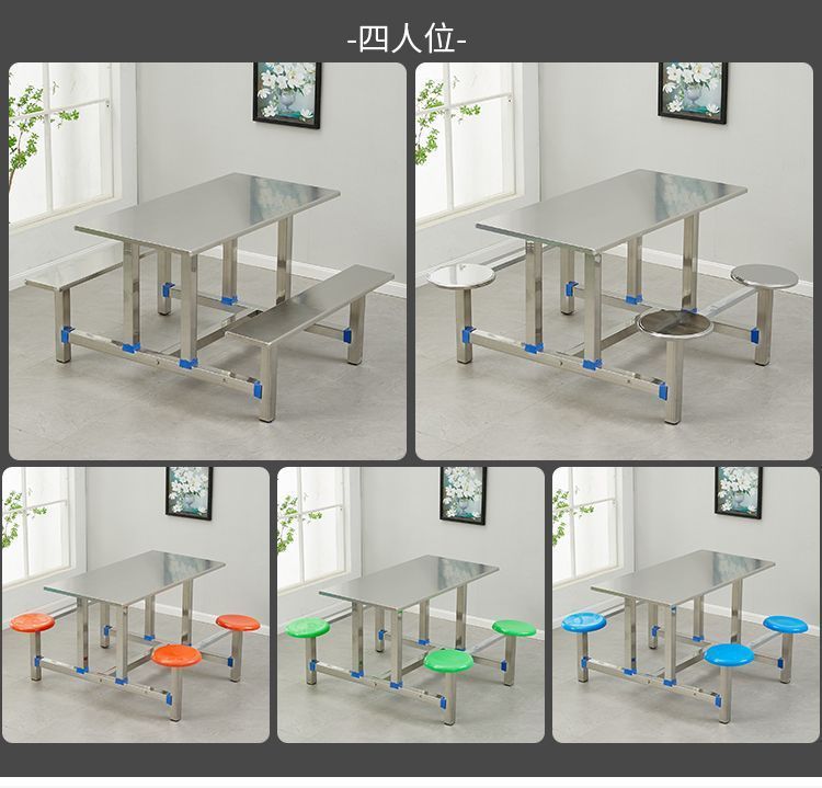 Стол и стулья из нержавеющей стали, столовая, школьный корпоративный ресторан, одноцелевой фаст-фуд стол, утолщенный, доступно несколько стилей