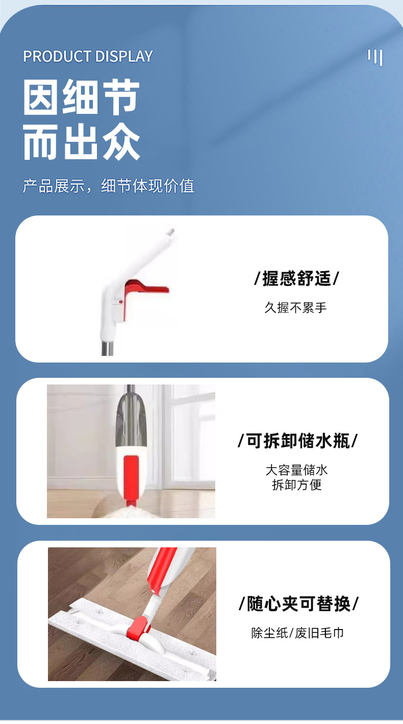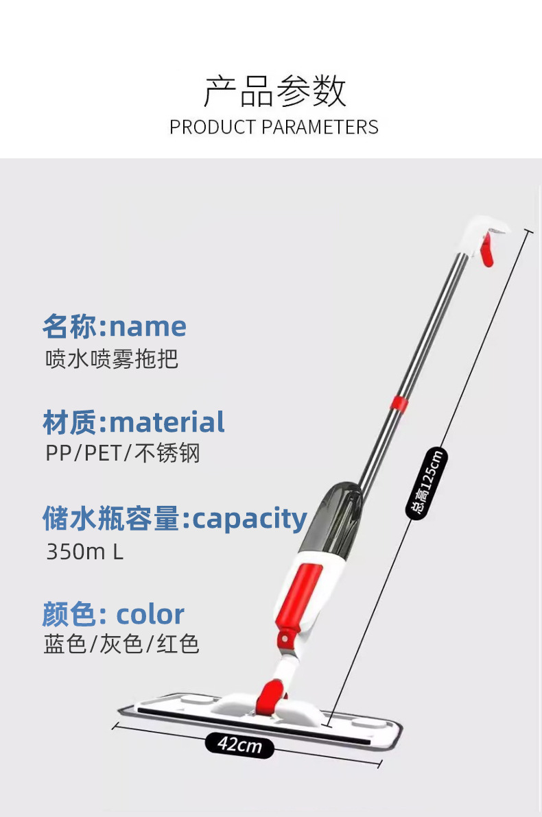 Уборочный односпрейный Mop, безрукий спрейный Mop, 42 см для сухой и влажной уборки с большим панелем и вращающимся спреем