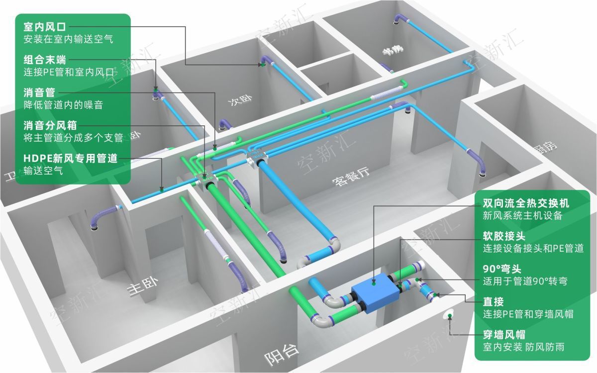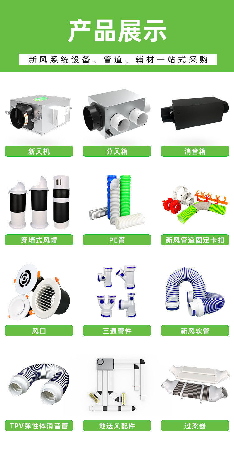 Система свежего воздуха, коробка распределения воздуха один к четырем, шести, восьмидесяти, вентилятор для свежего воздуха, фитинги ПП, глушитель статического давления, ответвитель