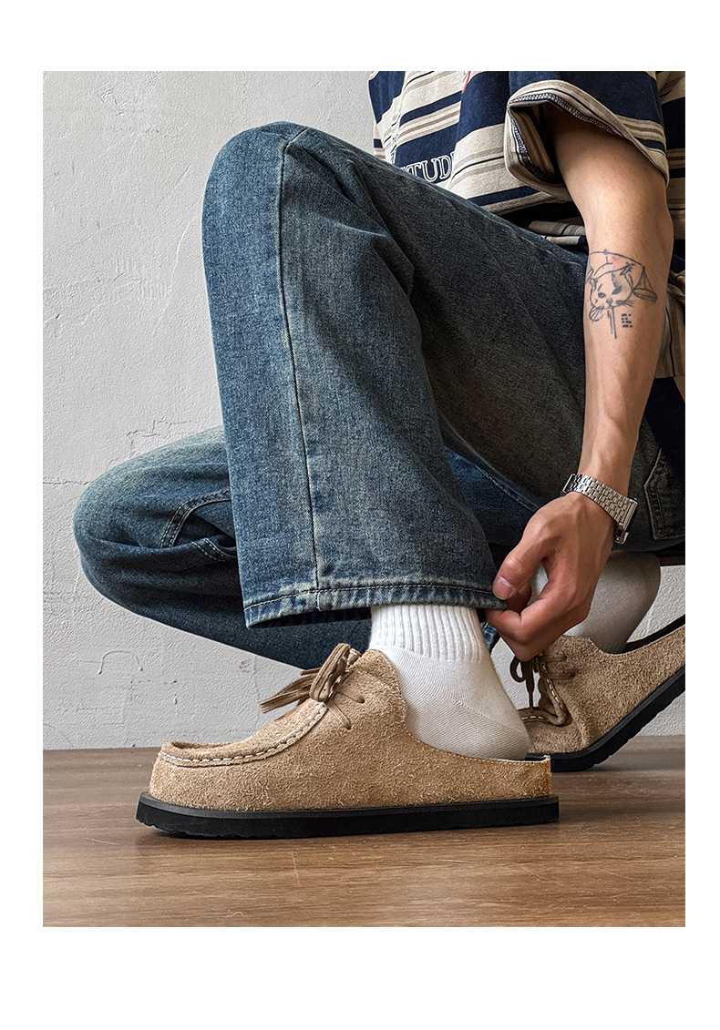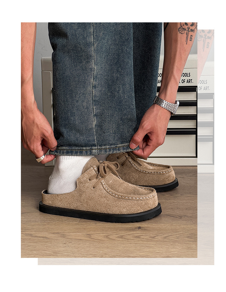 3755 ретро тапочки Баотоу Биркенсток шнурованные летние полутапочки для мужчин и женщин пары обувь из коровьей кожи