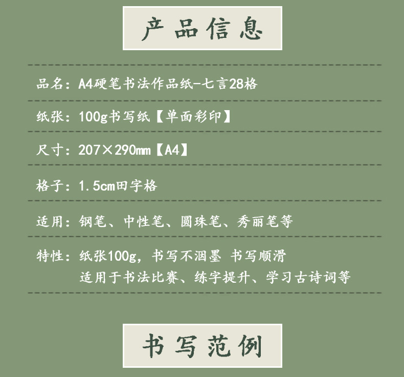 A4 бумага для каллиграфии с жесткой ручкой, 28 клеток, семи-символьные древние стихи, написание в древнем китайском стиле, конкурс каллиграфии