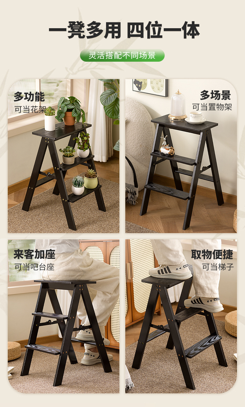 Многофункциональная устойчивая лестница-стул для дома, трехступенчатая складная лестница, кухня, двухцелевой высокий стул, барный стул, стеллаж для хранения
