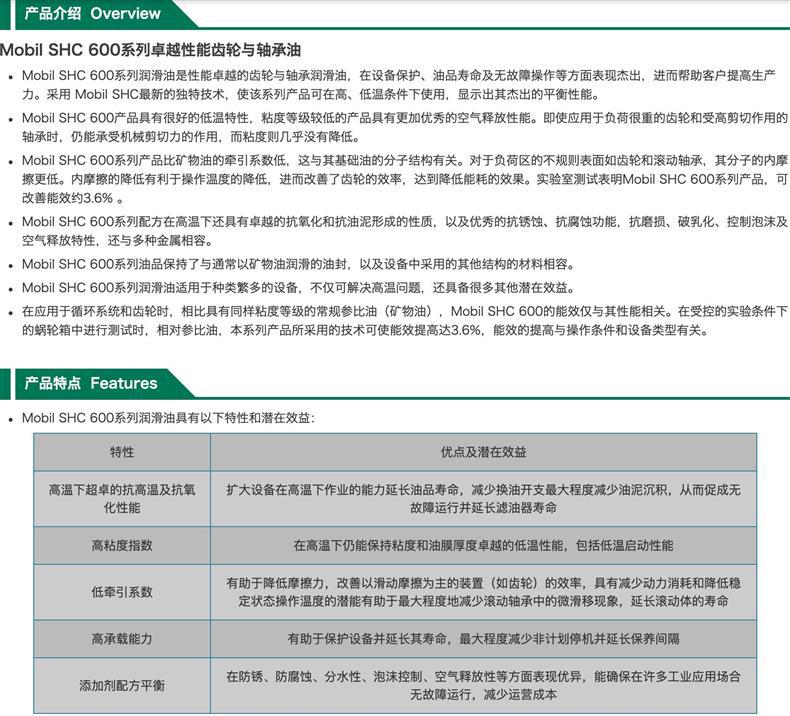 注意:Mobil SHC 600 系列不得用于航空领域,这表示该类产品不得设计或推荐用于飞机部件的润滑。