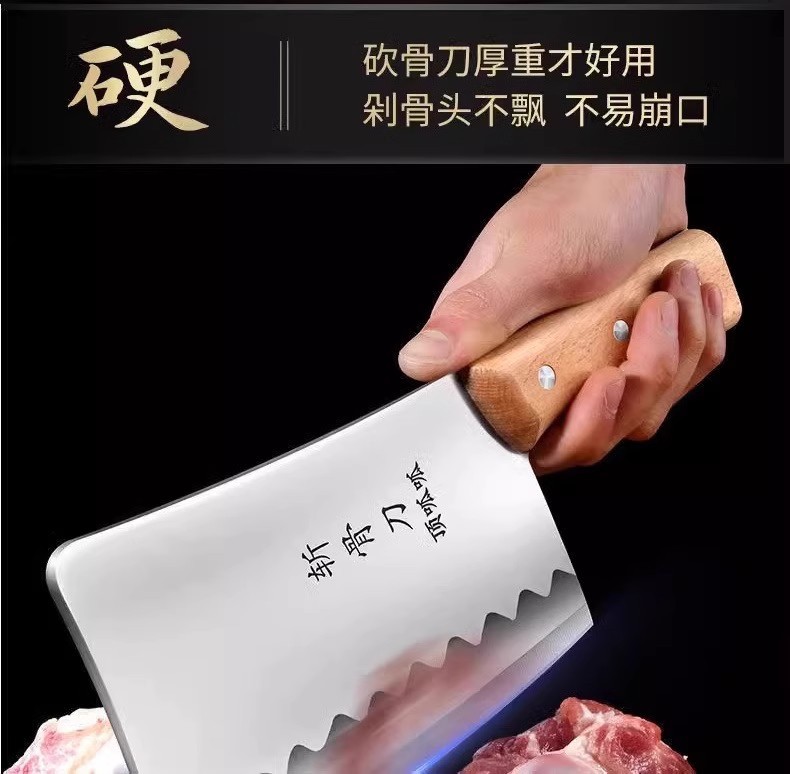 Кухонный нож для домашнего использования, нож для нарезки с ручкой из массива дерева, нож для костей, острый нож из нержавеющей стали для мяса и овощей, инструмент для резки костей