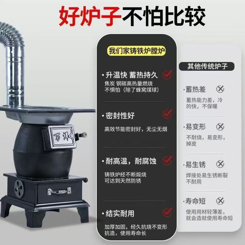 Чугунная утолщенная дровяная и угольная двухцелевое печь, чугунная дровяная печь, сельская обогревательная печь, новый внутренний обогрев для зимы