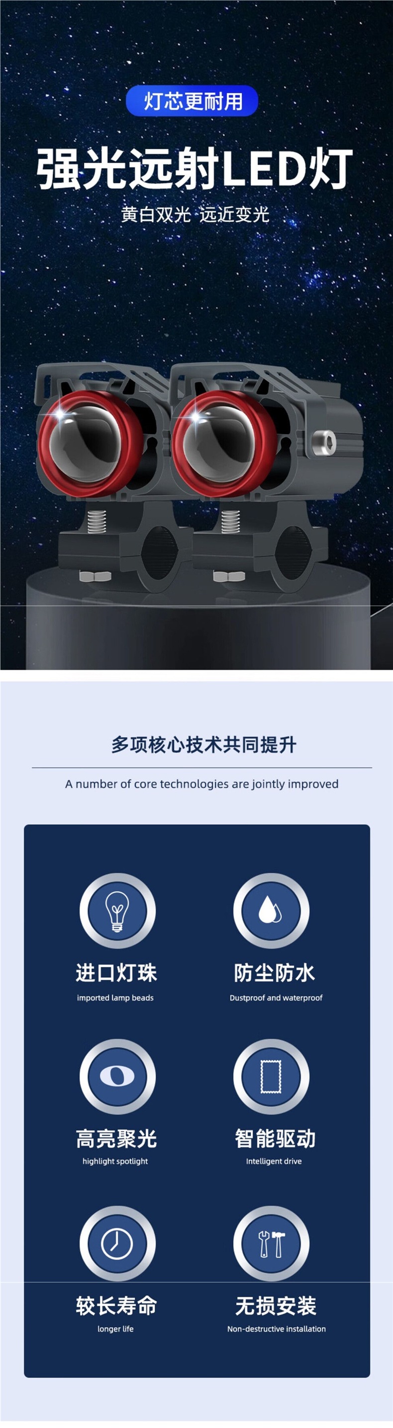 Мотоцикл светодиодный прожектор электрического транспортного средства внешний дальний и ближний свет линза с тангенциальным светом универсальная