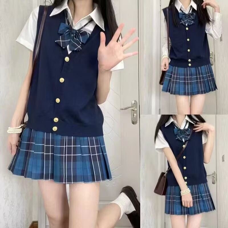 ![]() | Navy blue cardigan vest + big blue plaid + white short-sleeved shirt + bow tie | XS | 1шт: ¥73.00 | 1000 | 5940716925552 | |